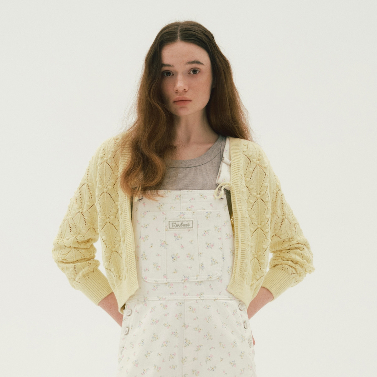 小熊设计感镂空钩花毛针织开衫短外套女 634881