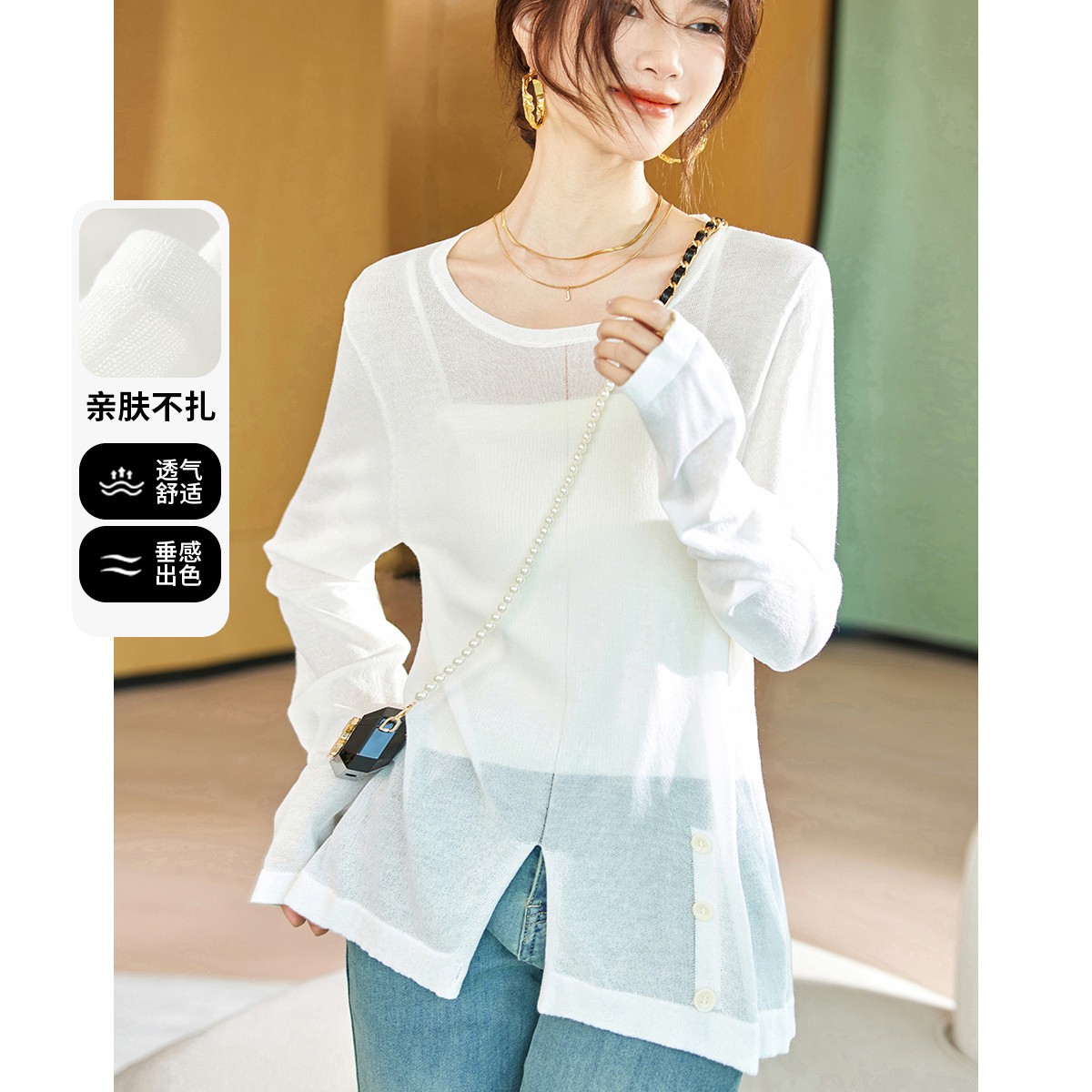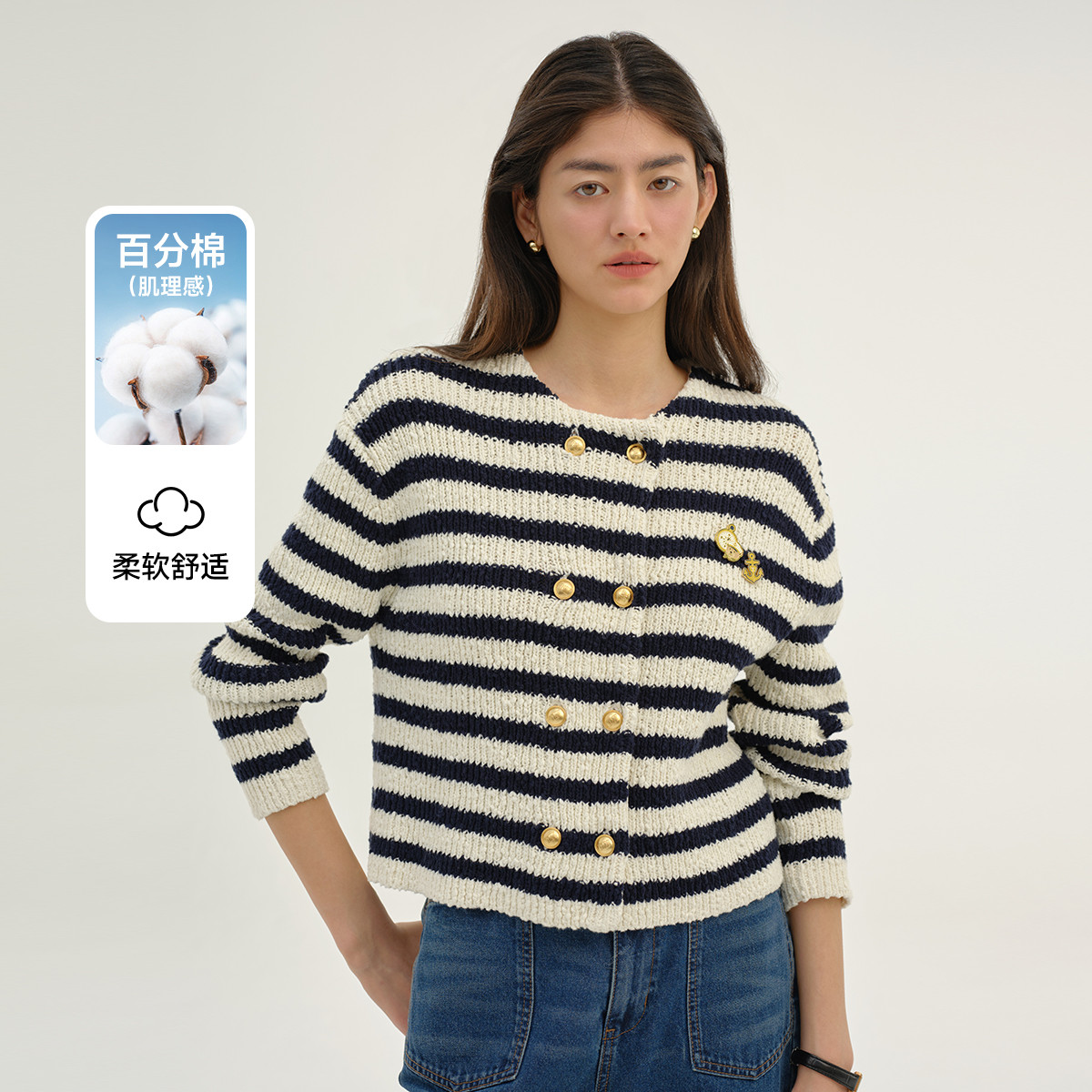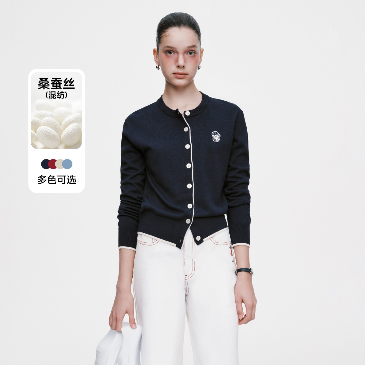 【含桑蚕丝】针织开衫女春季柔软针织开衫空调衫 298305