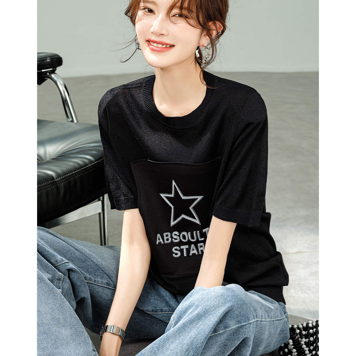 【福利钜惠】2025夏新款宽松显瘦短袖T恤凉爽薄款减龄针织衫 409097