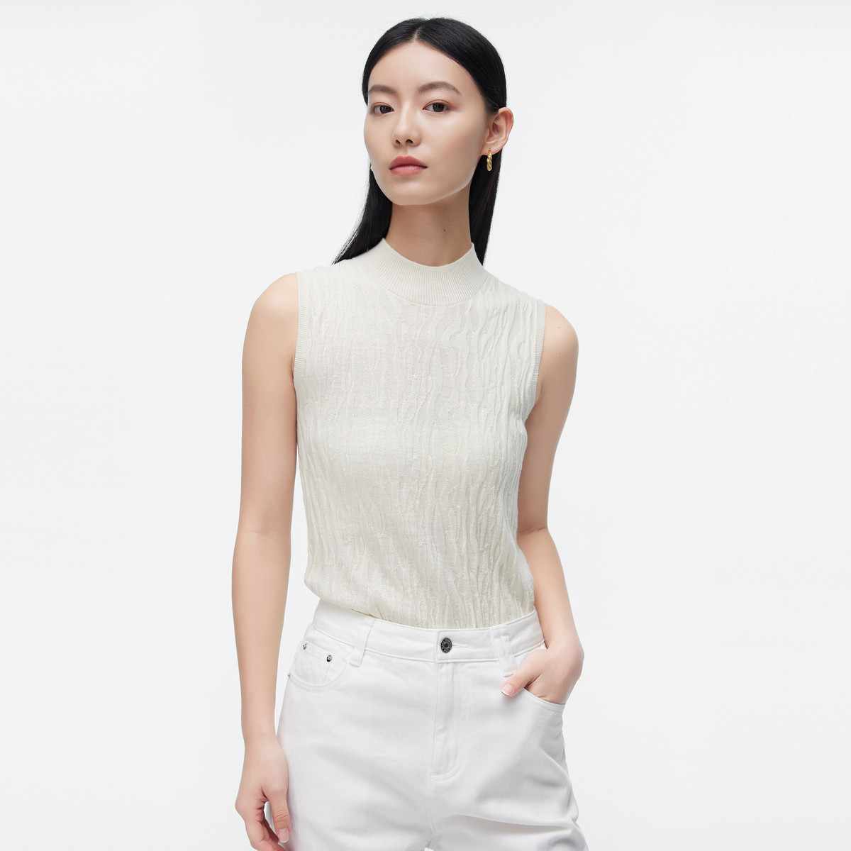 高弹百搭针织背心女休闲修身打底简约半高领纯色针织上衣女 691459