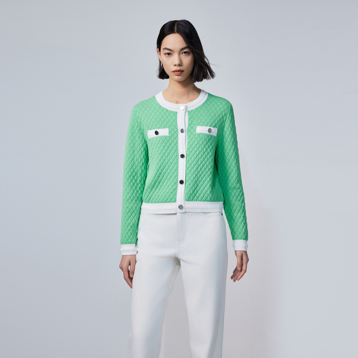 【薄荷曼波】春季款莫代尔复古小香风菱形短款长袖针织开衫女 163739