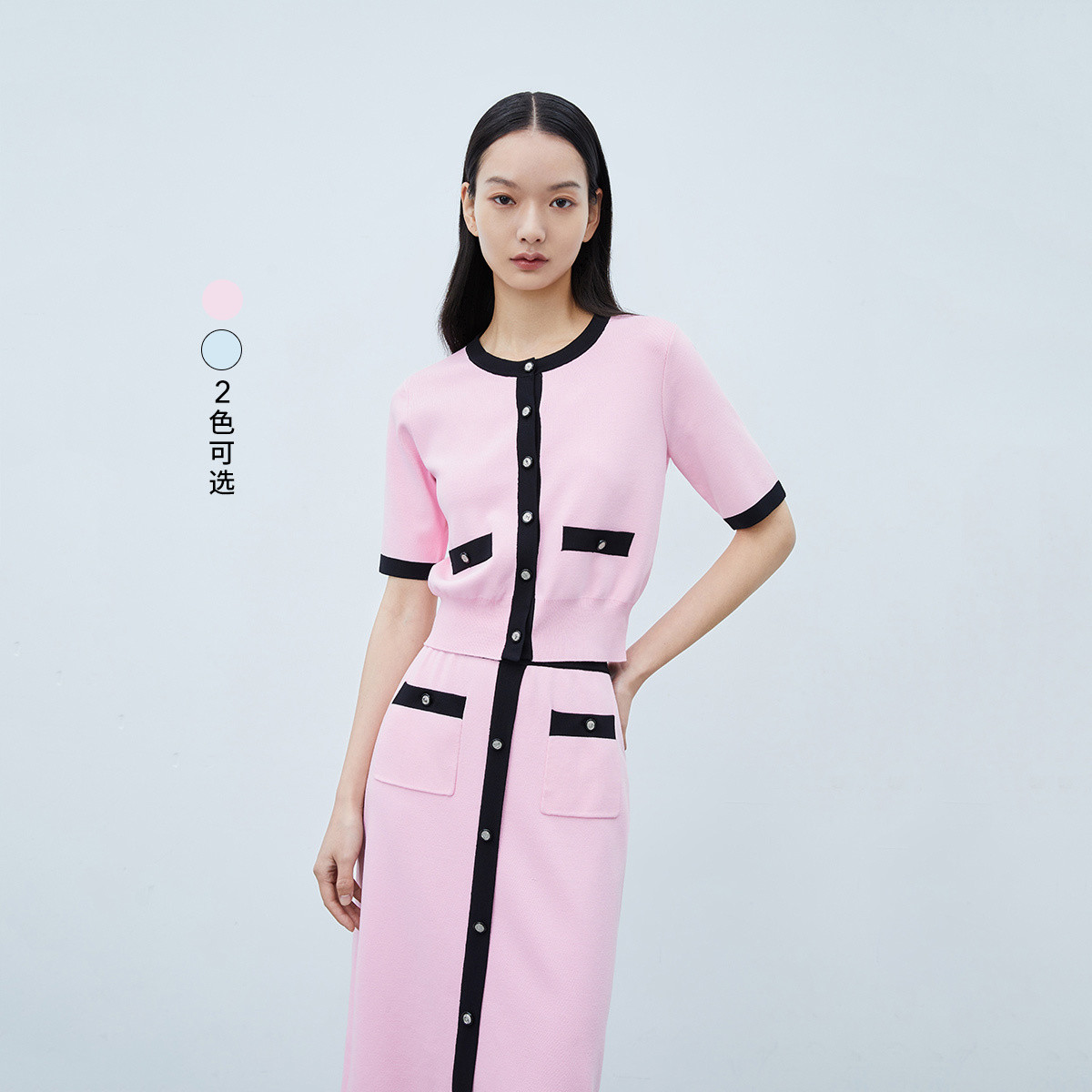 春季短袖上衣女法式小香风圆领薄款气质短袖针织开衫女 913691