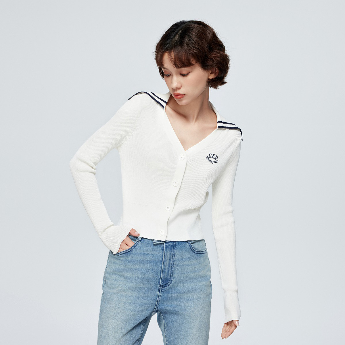 Gap女装春夏刺绣logo海军领撞色针织开衫修身上衣890003 034842