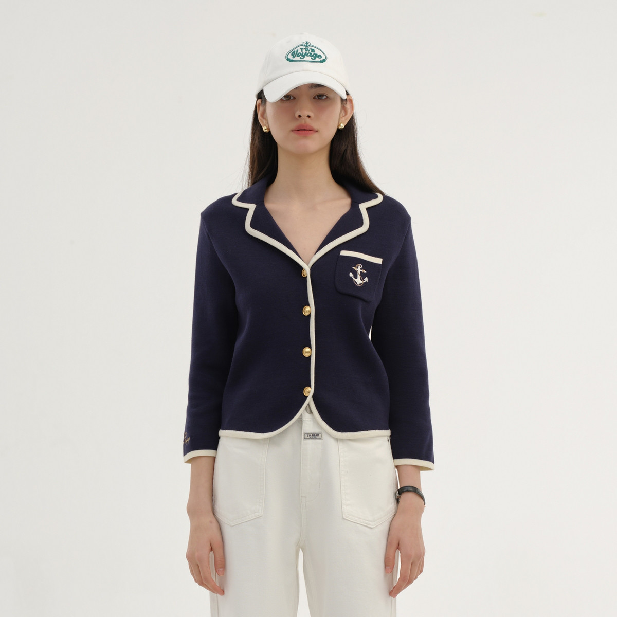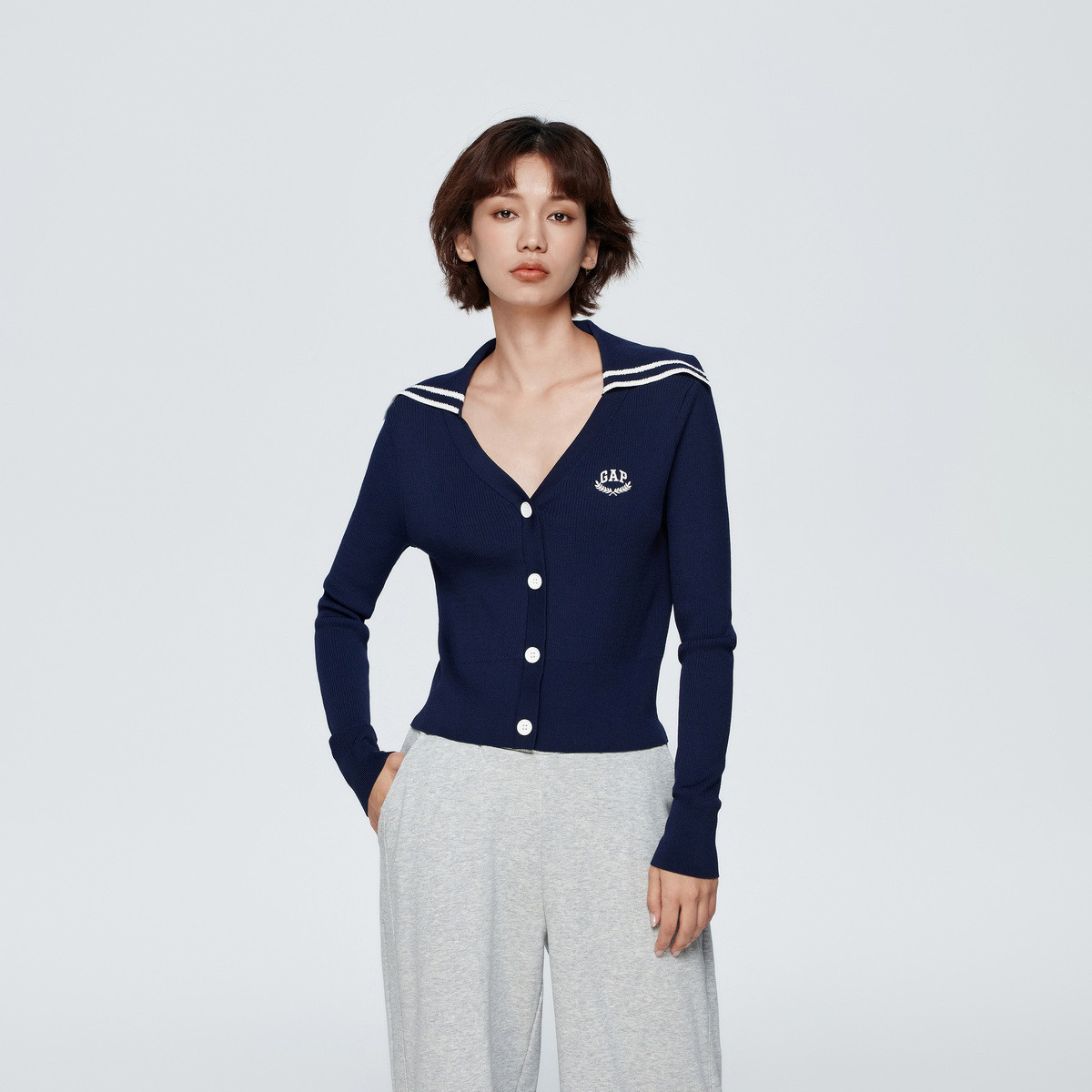 Gap女装春夏刺绣logo海军领撞色针织开衫修身上衣890003 043034