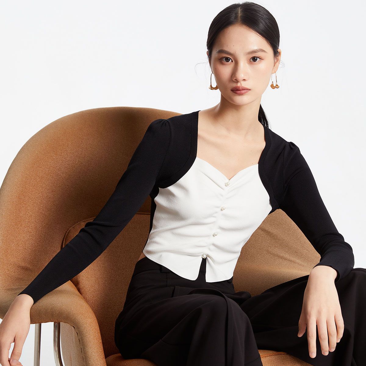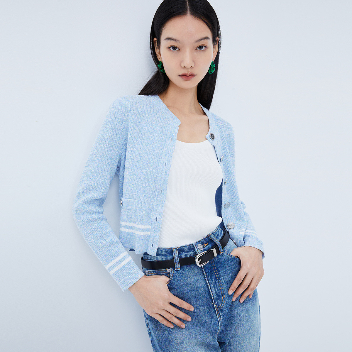 【商场同款】春季气质纯色修身款圆领长袖针织开衫 684315