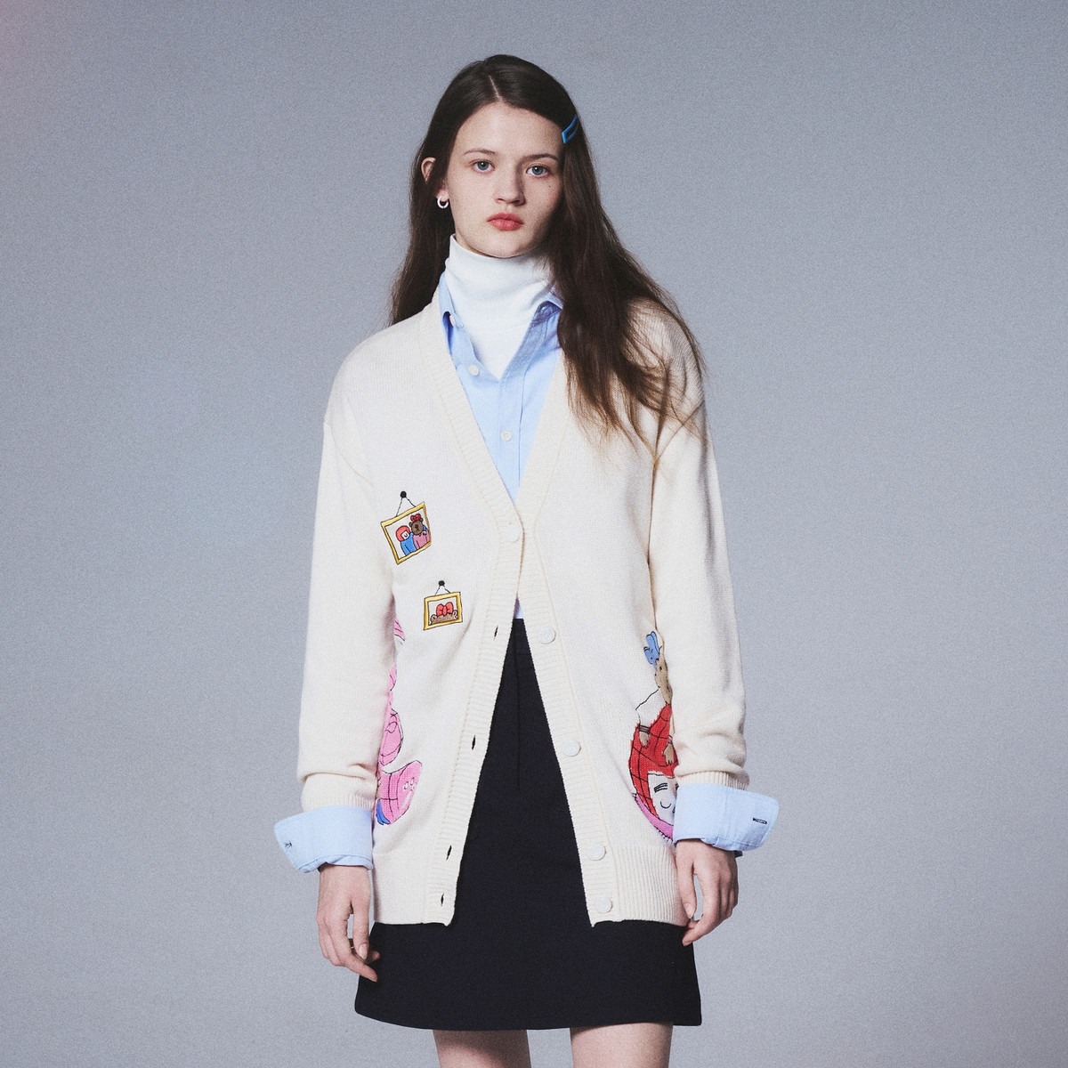 小熊春秋款宽松V领针织开衫少女感毛衣外套女 295361