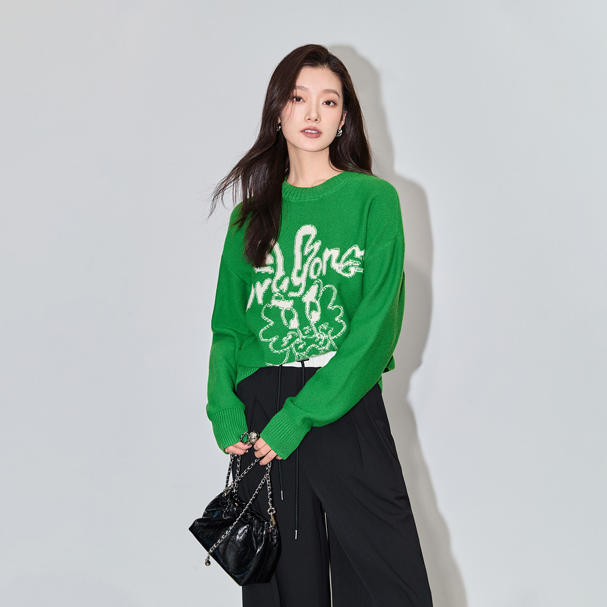 【龙年衣】春季款季拜年红色毛衫全绵羊毛针织衫毛衣女上衣 769691