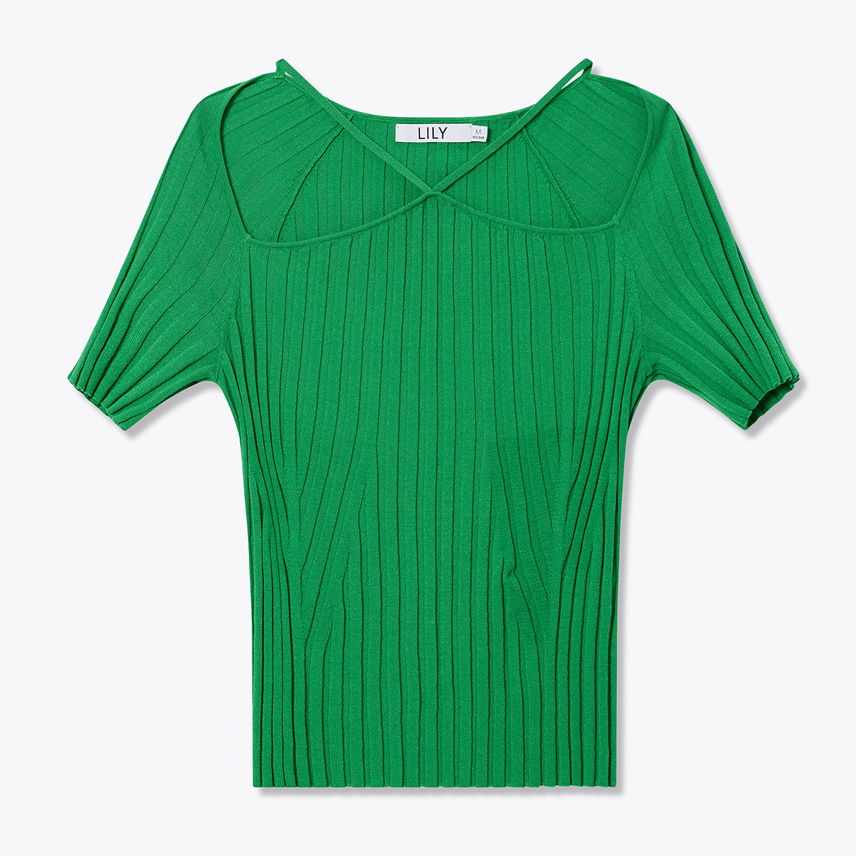 【商场同款】春季短袖薄针织衫女时尚纯色别致吊带式显瘦针织衫女 141147