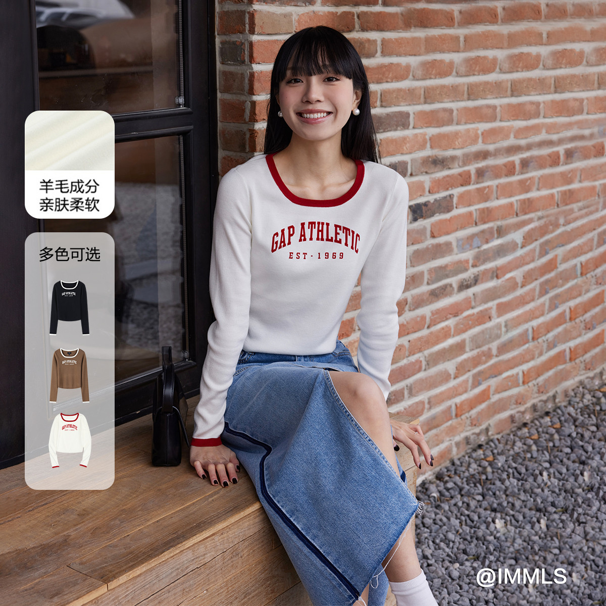 Gap女装春夏款LOGO提花休闲复古紧身圆领针织衫891639上衣 853018