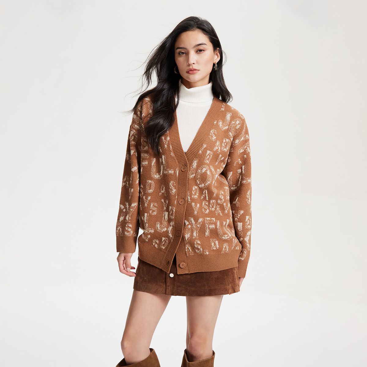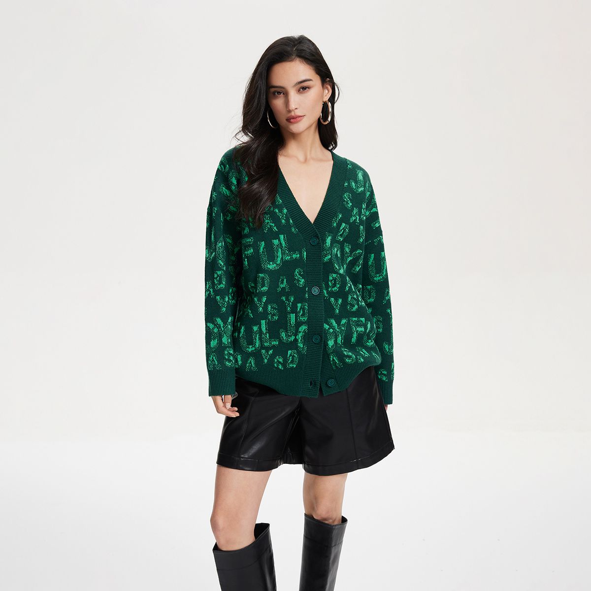 【字母提花】针织衫女宽松V领纽扣字母提花开衫毛衣高级感上衣 933009