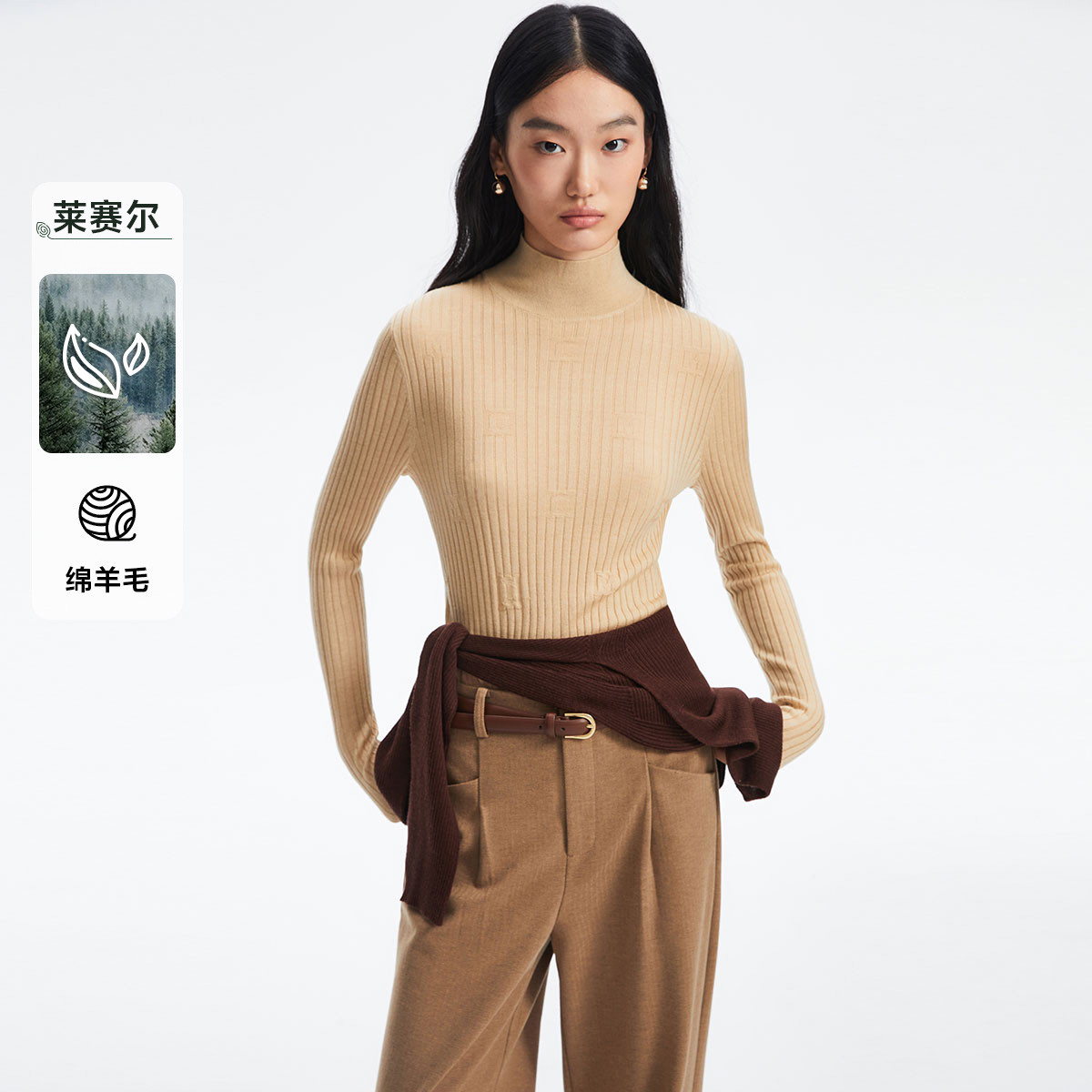 【天丝柔软】春夏季优雅高领含羊毛打底针织衫毛衣气质百搭时尚 752081