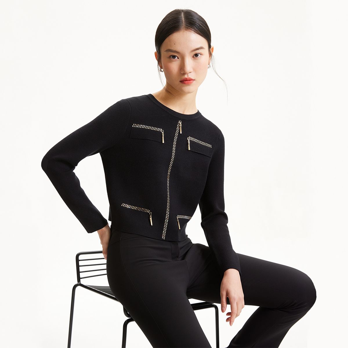 【2024秋季】时尚个性不对称设计感针织开衫修身显瘦毛衣女 746964