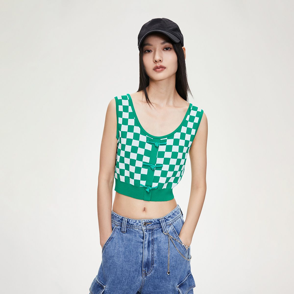 【福利秒杀款】夏季无袖盘扣U型领短款针织衫女 347162