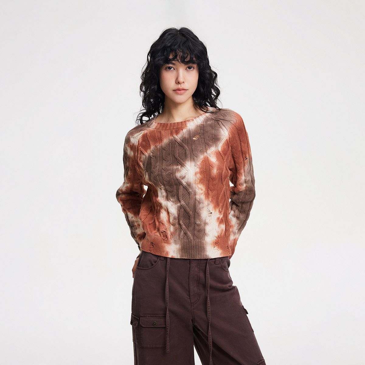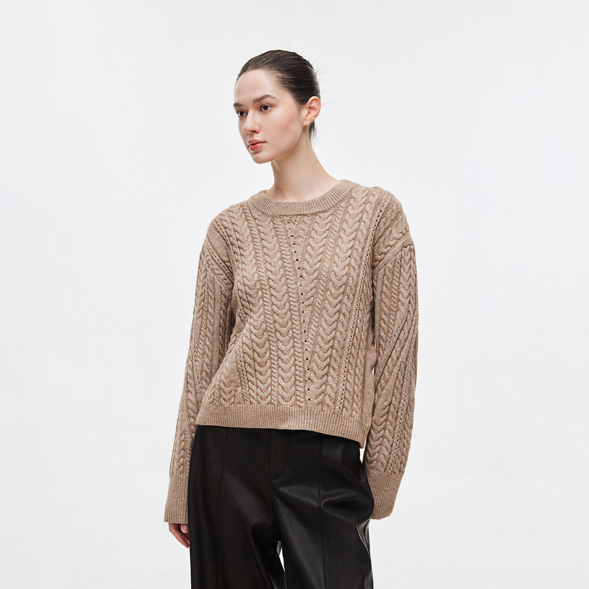 【百搭设计感】麻花拼接宽松螺纹针织衫女 643674
