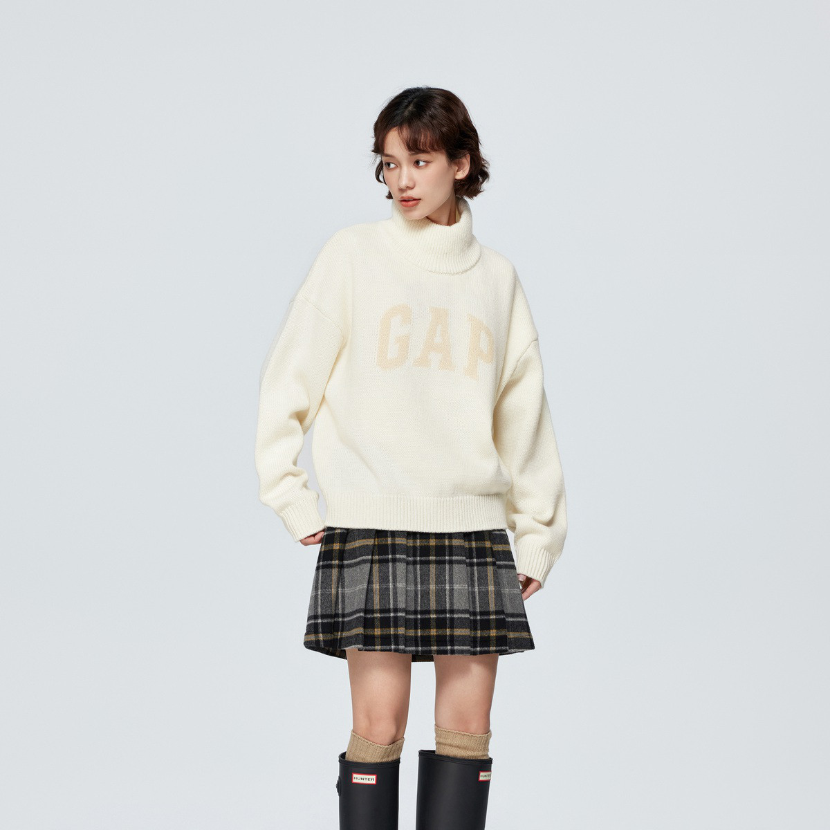 Gap女装秋季半高领套头毛衣836347宽松羊毛针织衫 622362