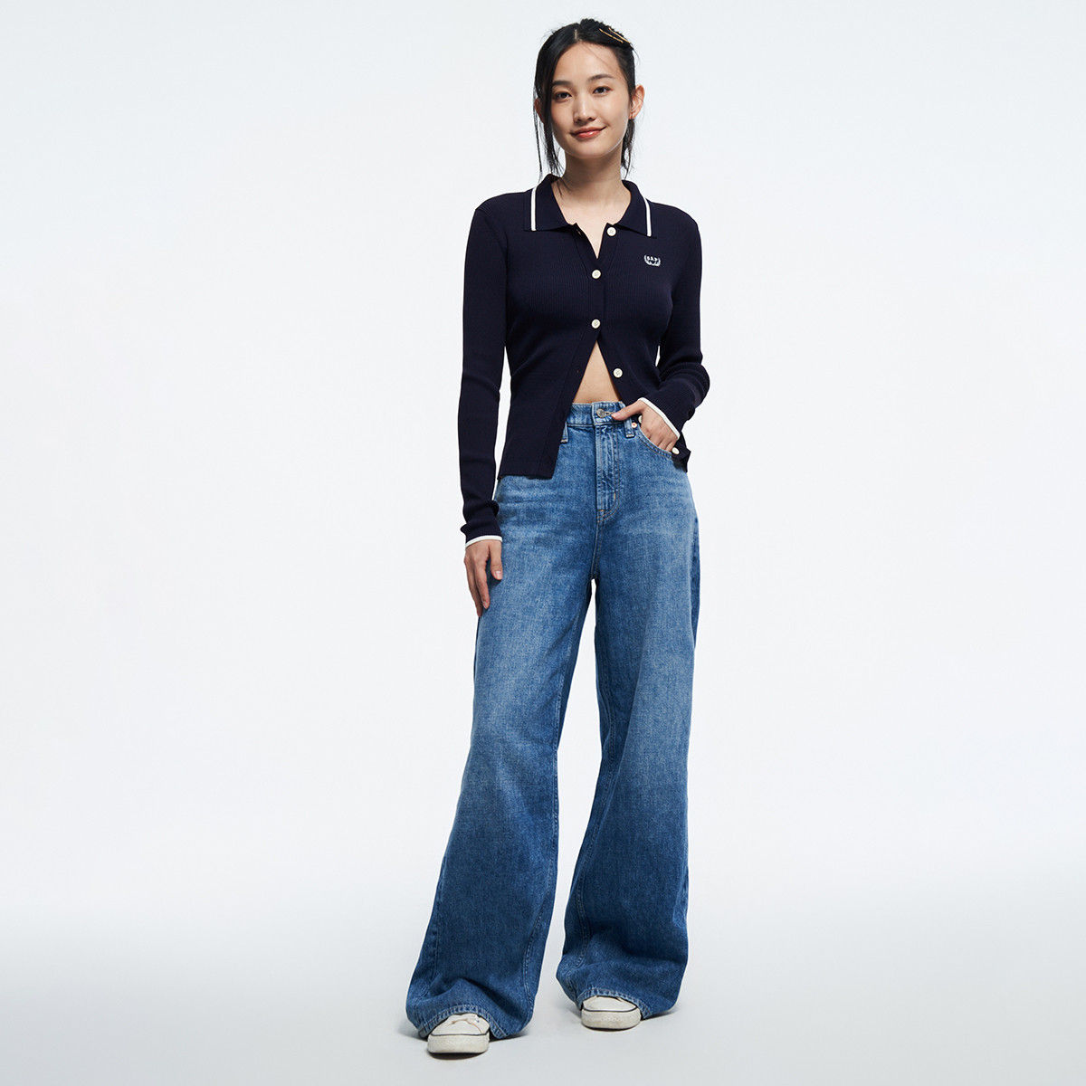 【休闲百搭】夏季简约纯色POLO领开衫针织衫女 547098