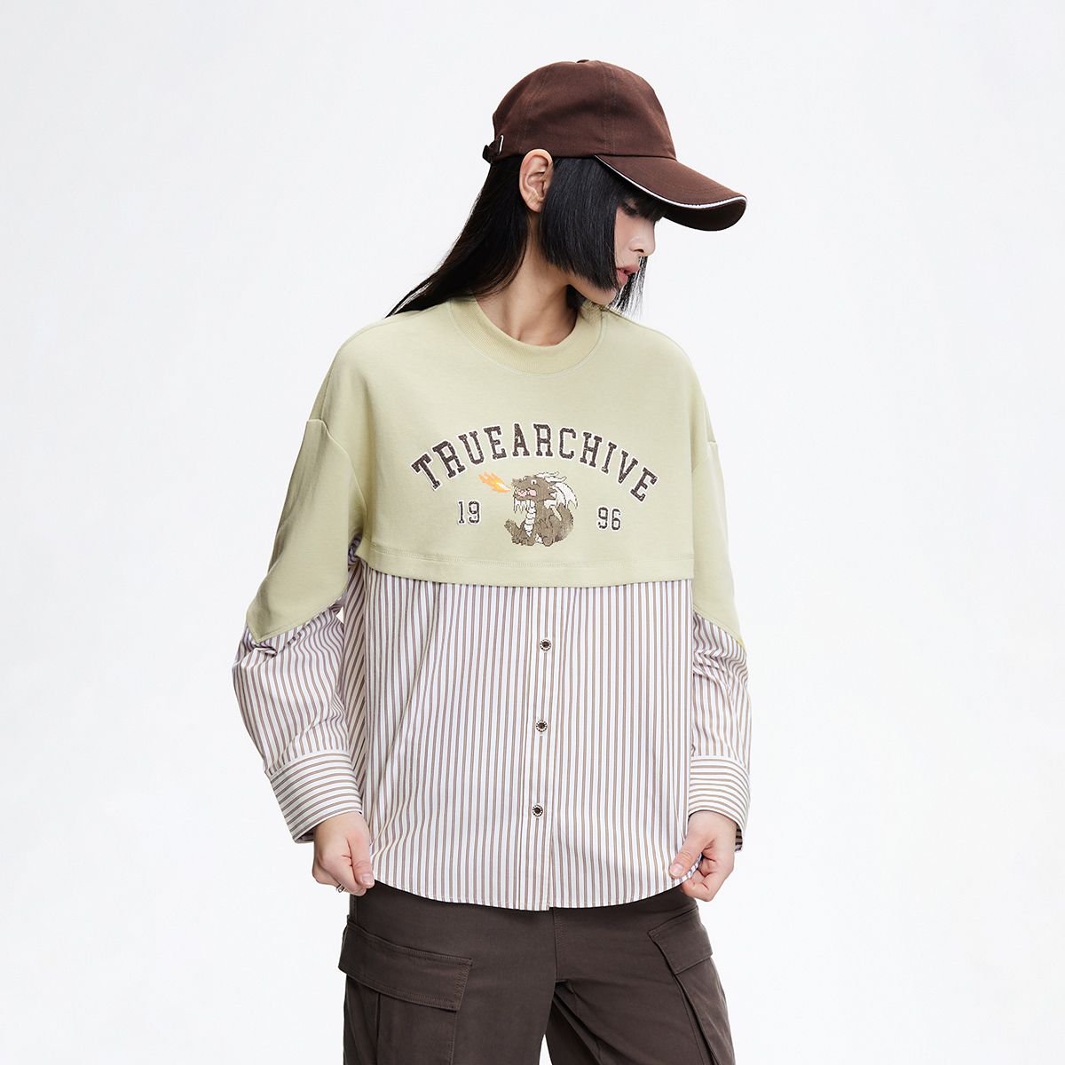 【宽松落肩】春季时尚拼接宽松落肩长袖雪纺衫女 330586