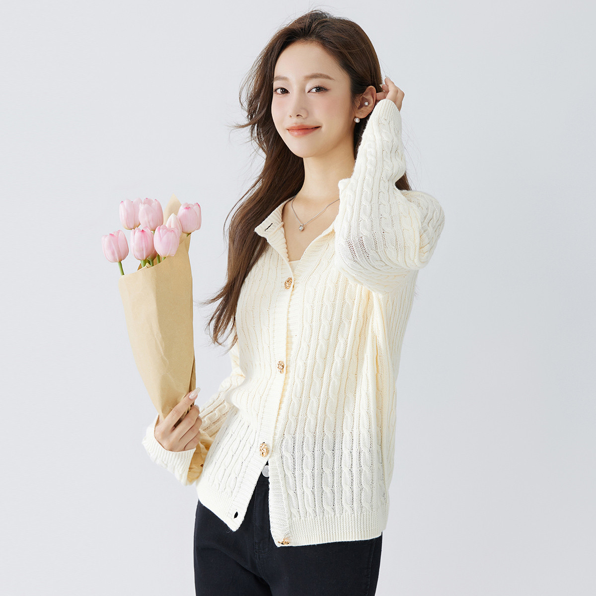 【气质显白】春季款女式开衫纽扣时尚长袖针织衫打底上衣舒适休闲 408459