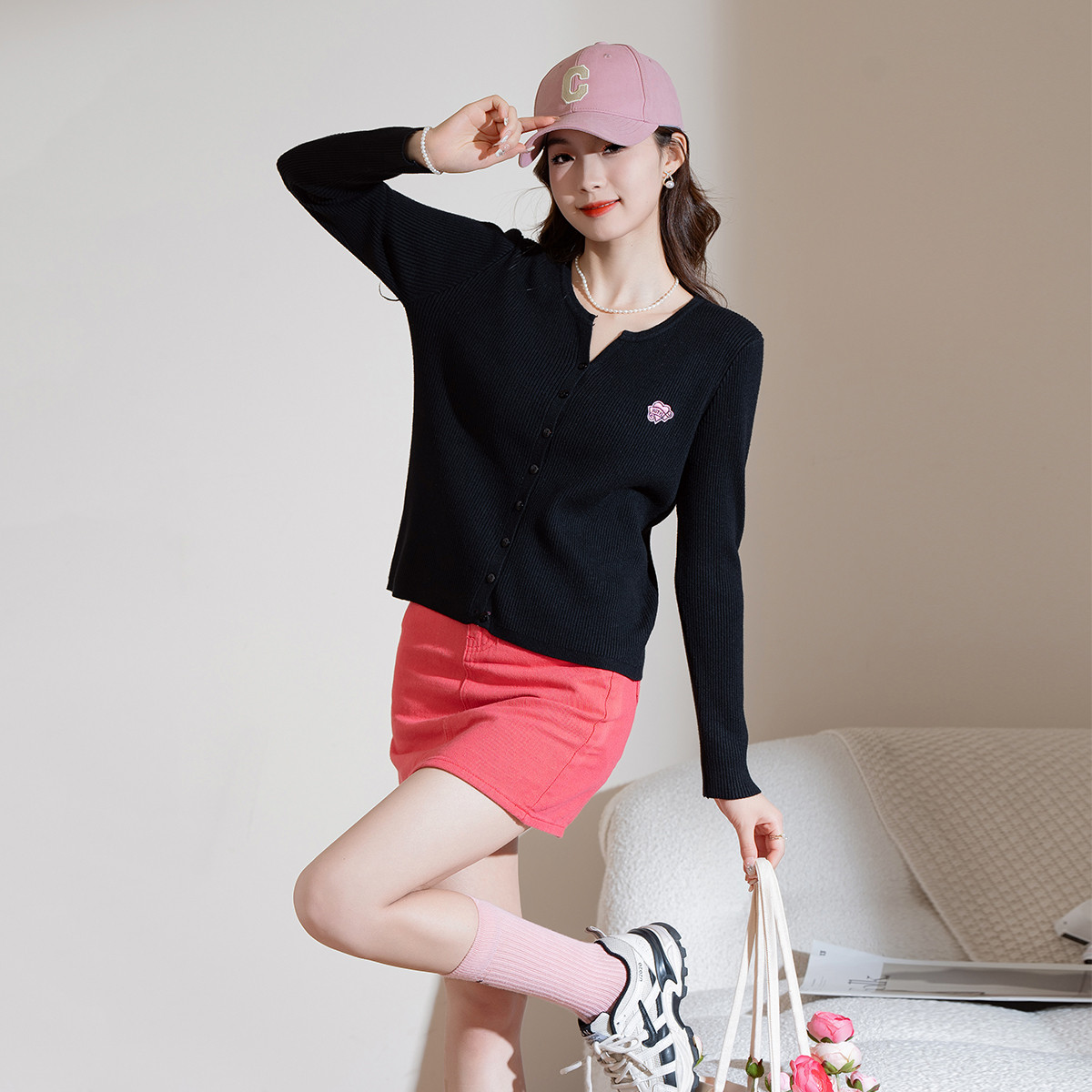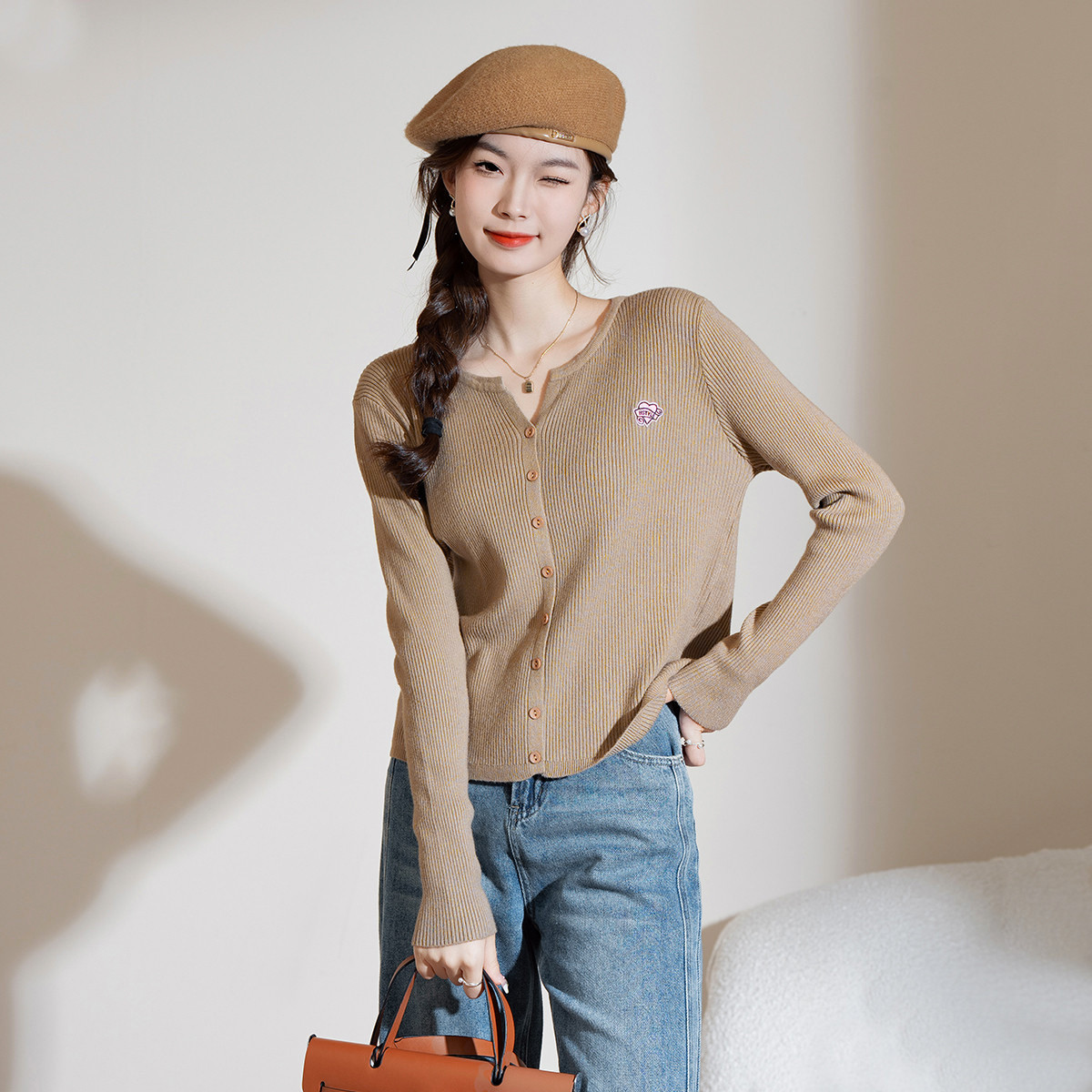 【气质显白】春季款女式开衫纽扣时尚长袖针织衫打底上衣舒适休闲 374923