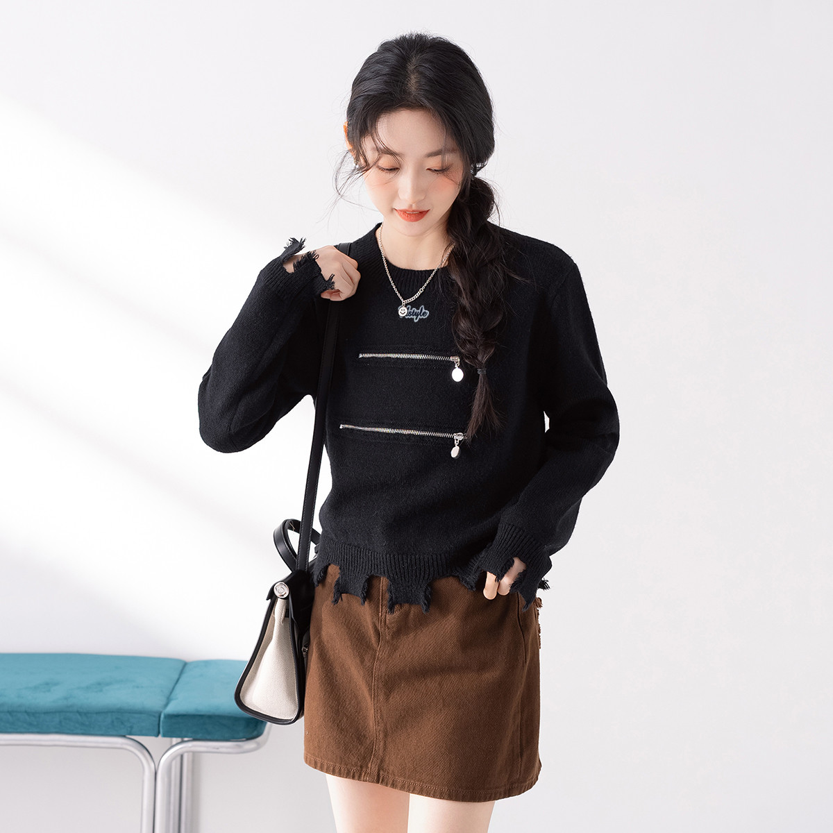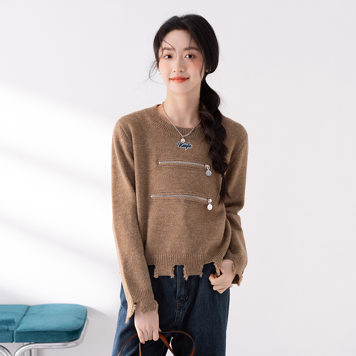 【下摆袖口ins不规则设计感上衣女】春季款女式打底针织衫长袖 192907