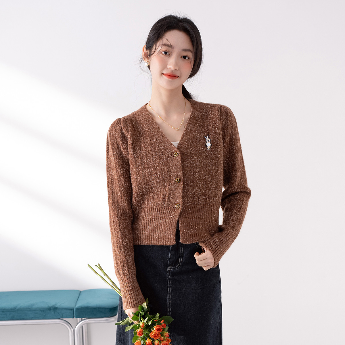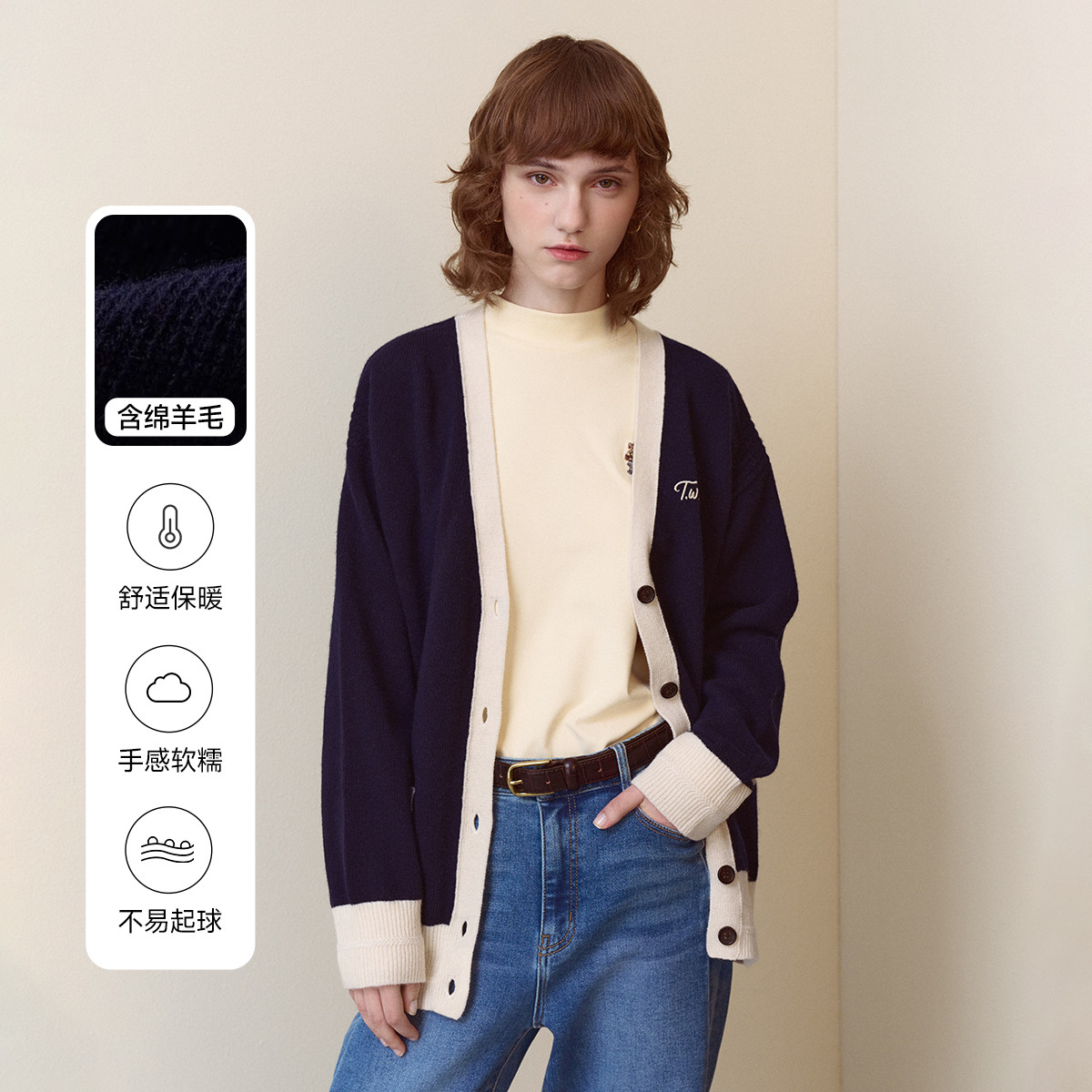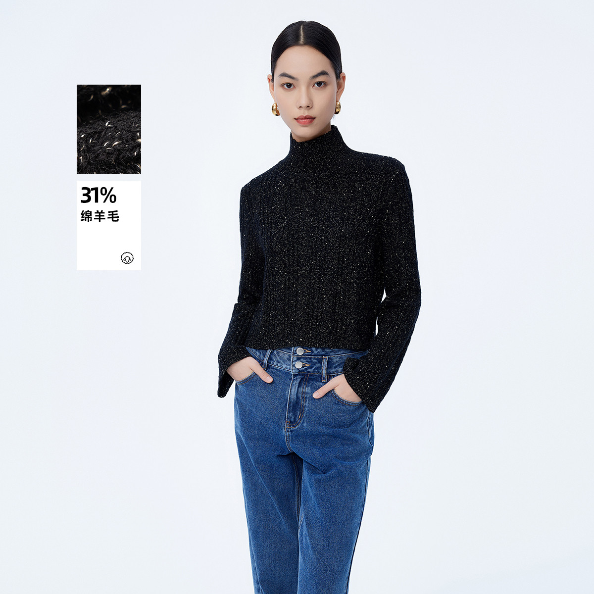 【商场同款】春季款美利奴羊毛含山羊绒通勤针织开衫 697627