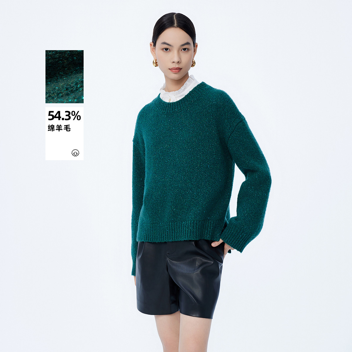 春季绵羊毛气质通勤款时尚都市百搭宽松毛衣上衣女 525915
