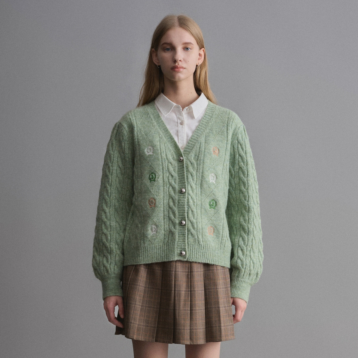【纯色开衫】针织衫女开衫长袖坑条简约格雷灰韩系 195473