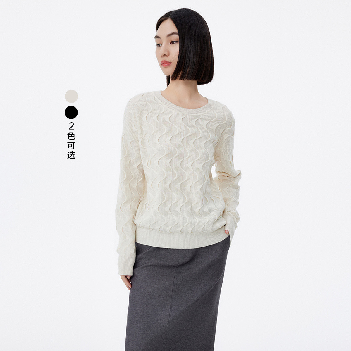 初春季软糯山羊绒别致波纹时尚气质通勤毛衣打底衫女 620123