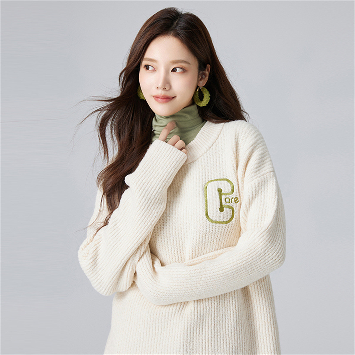 【圆领毛衣】女春款高级感刺绣舒适百搭针织衫 498251
