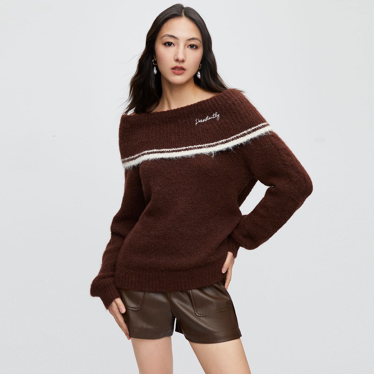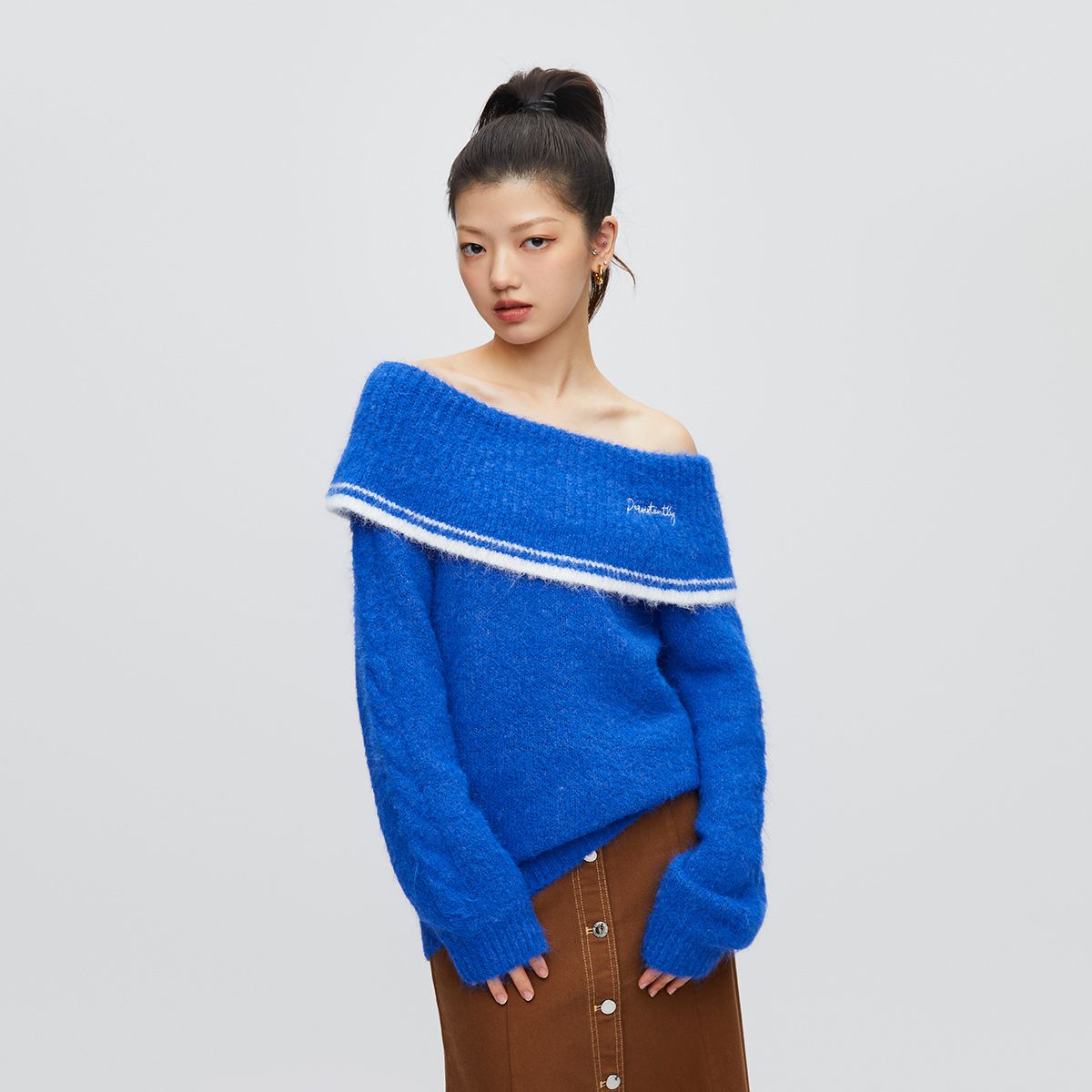 【一字领】春季百搭一字领宽松长袖针织衫女 354586