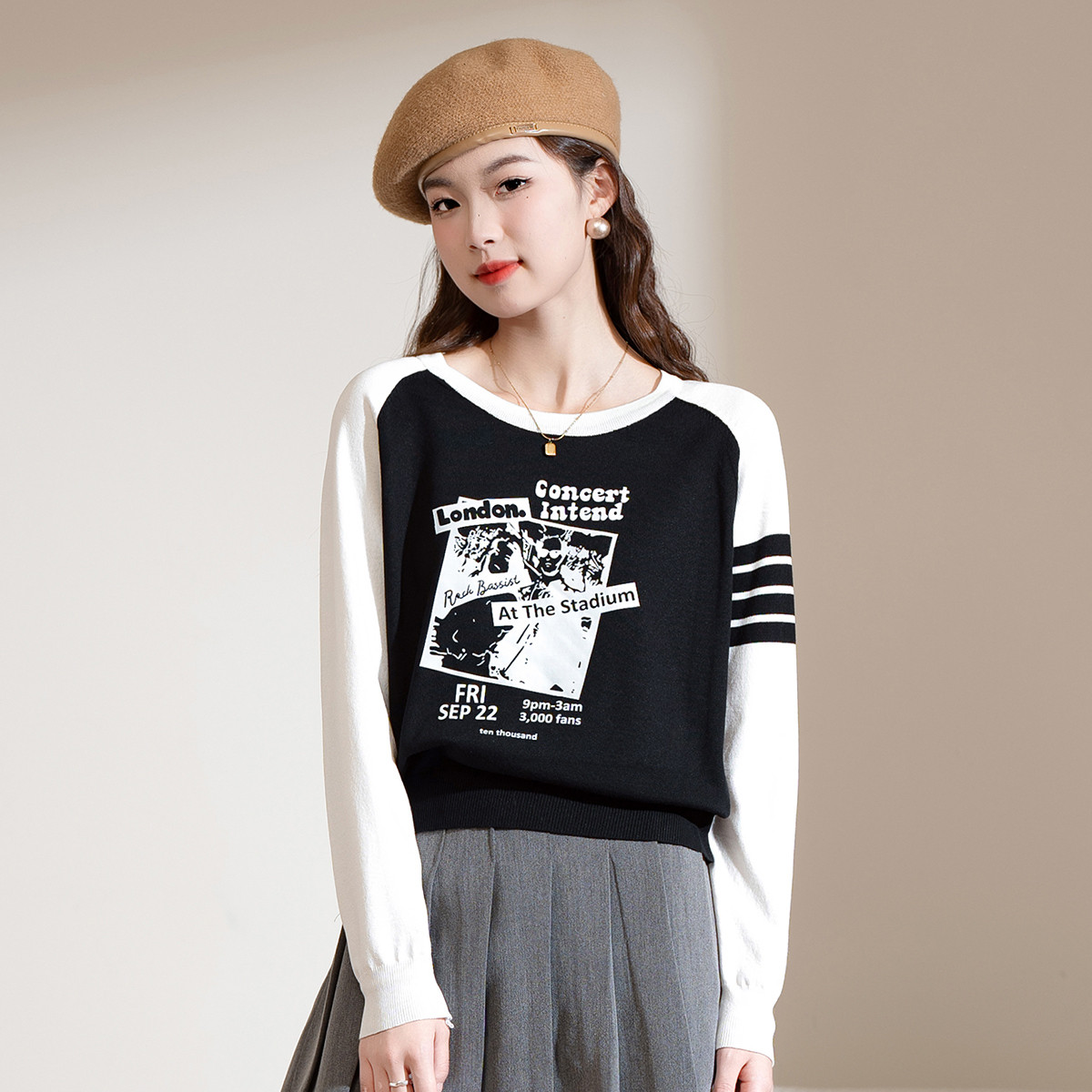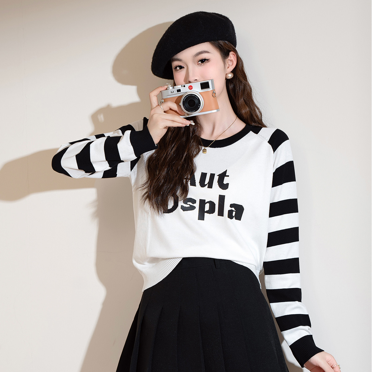 【撞色字母】春季款女式休闲百搭日常通勤长袖针织衫打底衫 296843