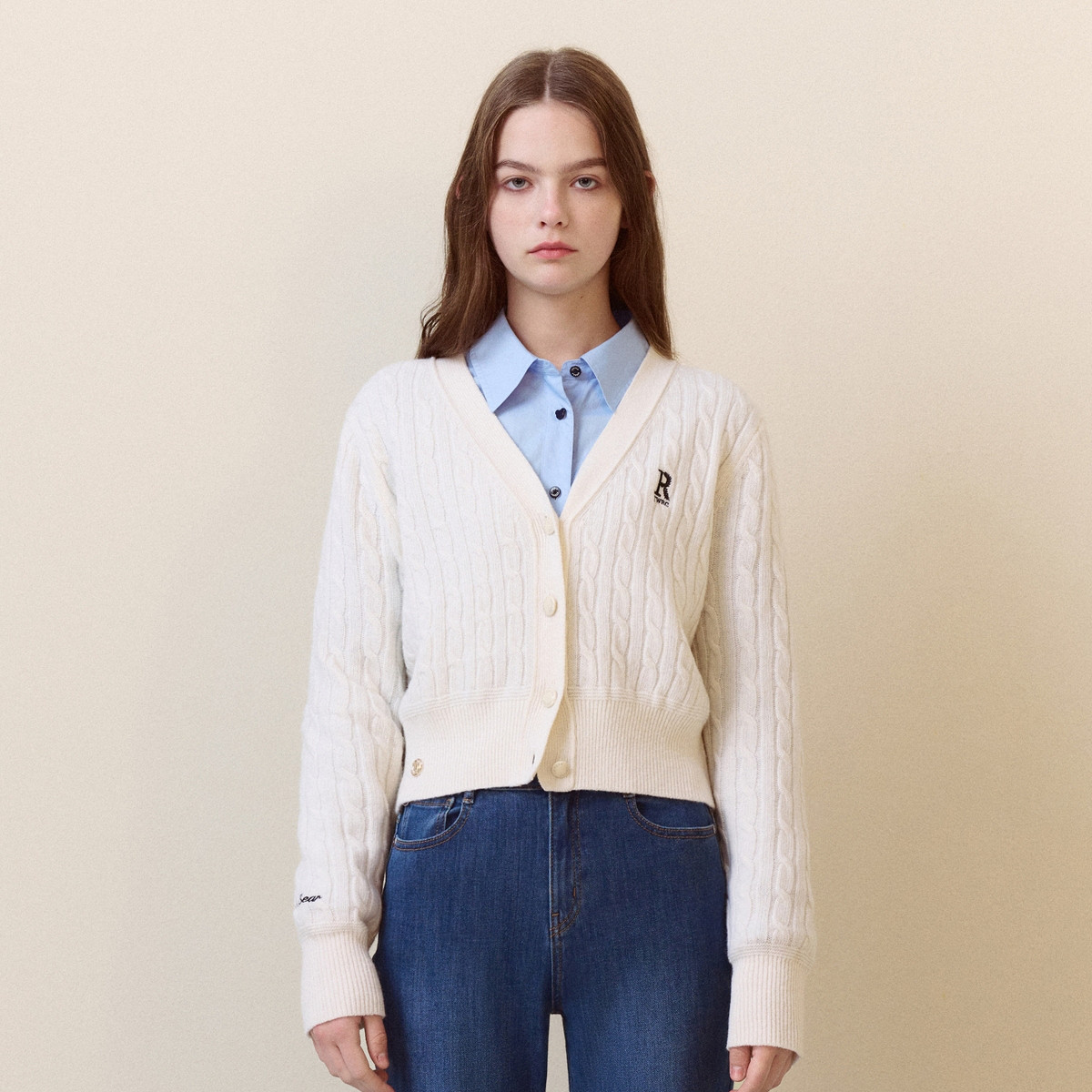 小熊春秋款提花针织衫开衫外套毛衫慵懒风小个子女士 966401