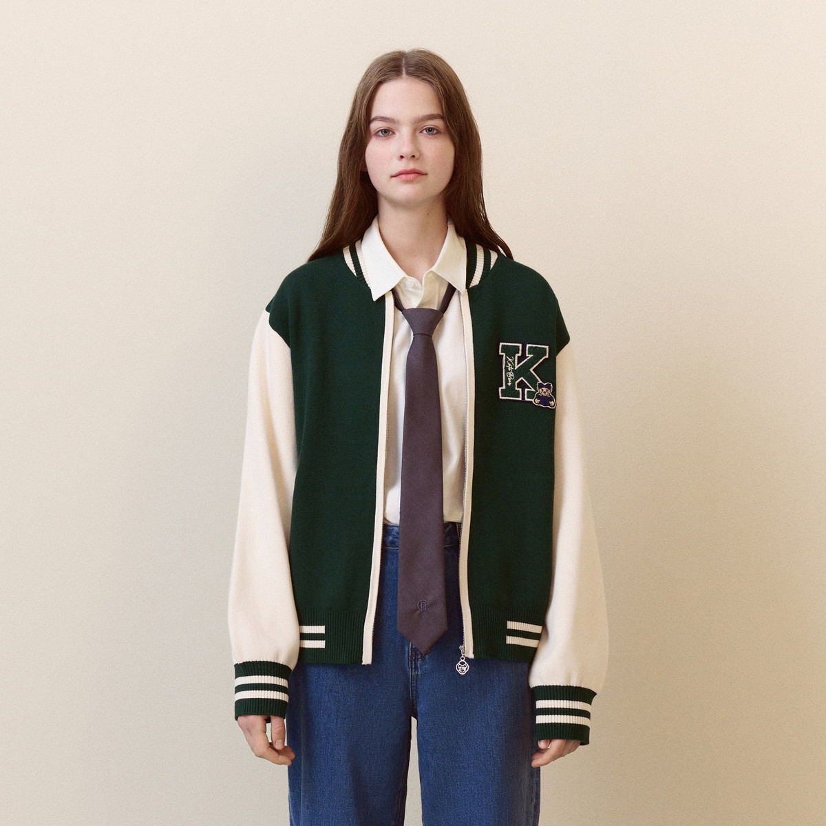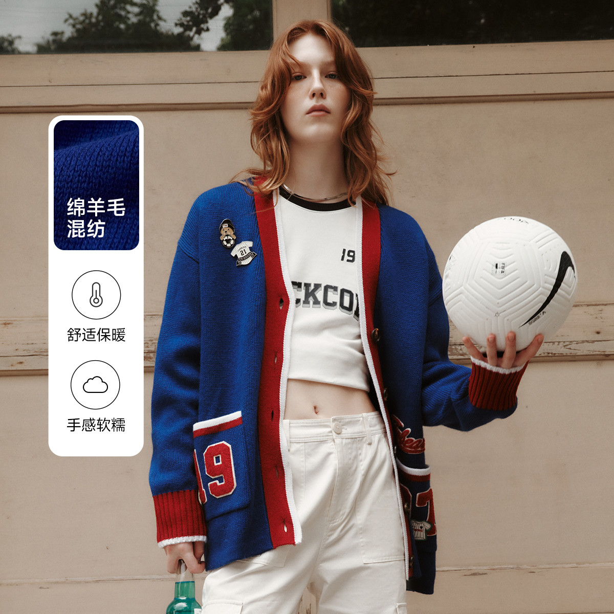 小熊春秋款学院风棒球服式针织开衫毛衣外套设计感女 723649