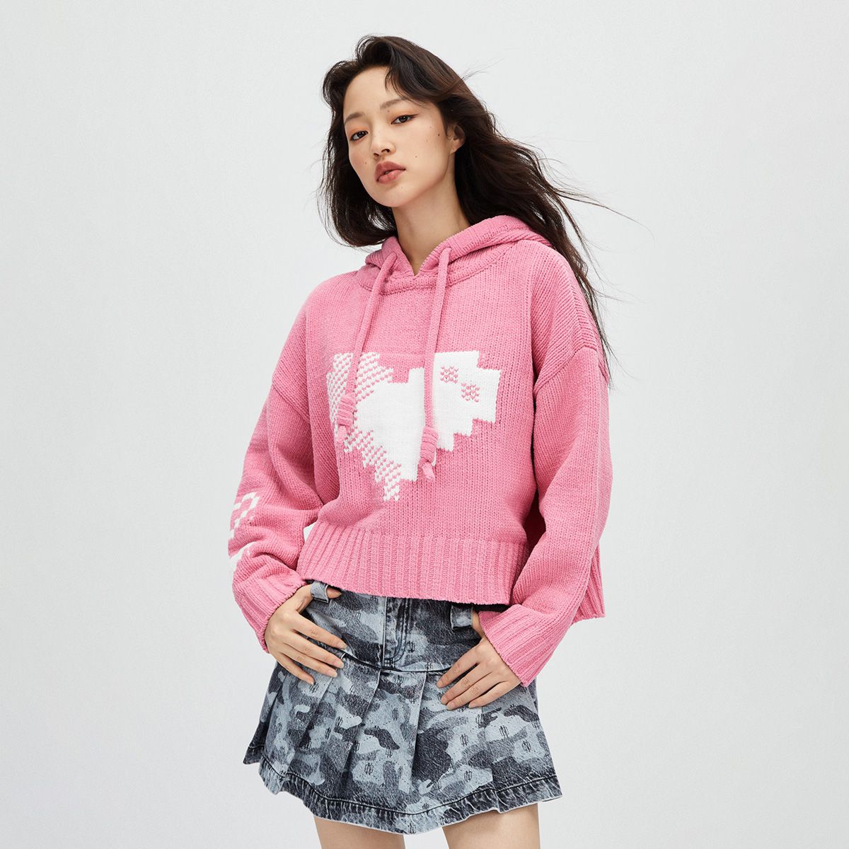 【宽松落肩】春季落肩长袖短款连帽针织衫女 023770
