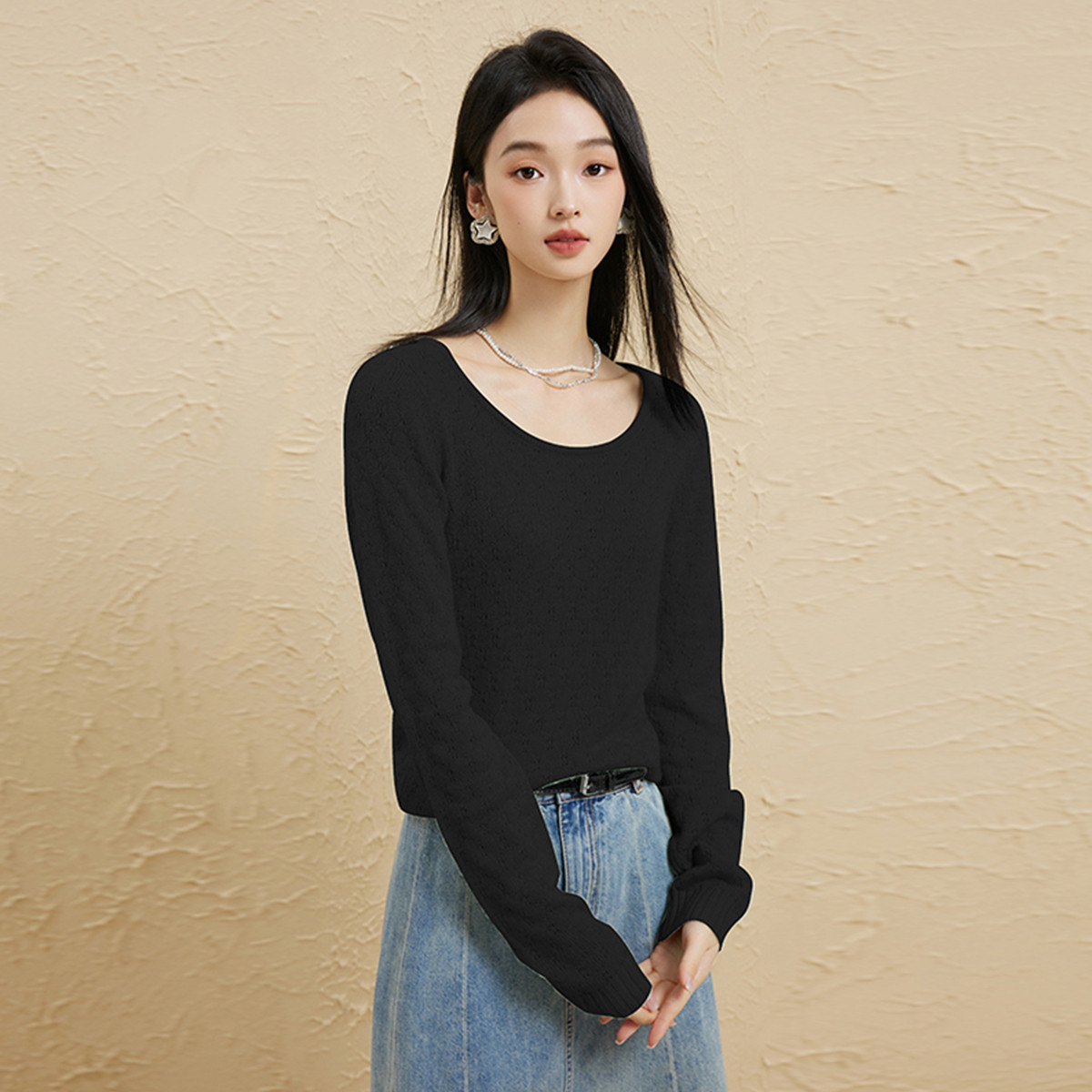 【日常通勤】春季款女式简约休闲长袖珠子点缀上衣百搭针织衫打底 329611