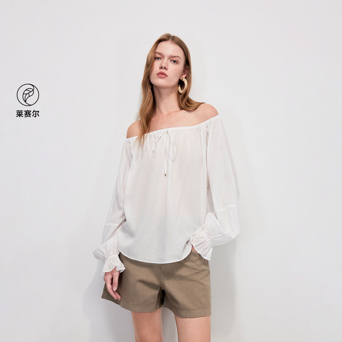 【绑带一字领】2025夏季度假风喇叭袖口宽松长袖雪纺衫女 982490