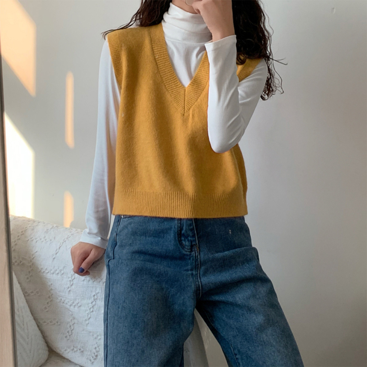 V领宽松针织上衣百搭气质短针织马甲背心女 847363