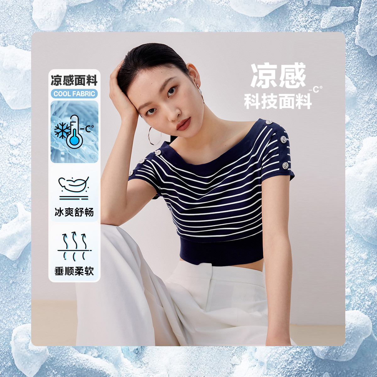 【海军风】修身短款条纹百搭航凉感短袖针织衫 828561