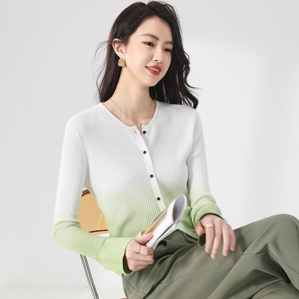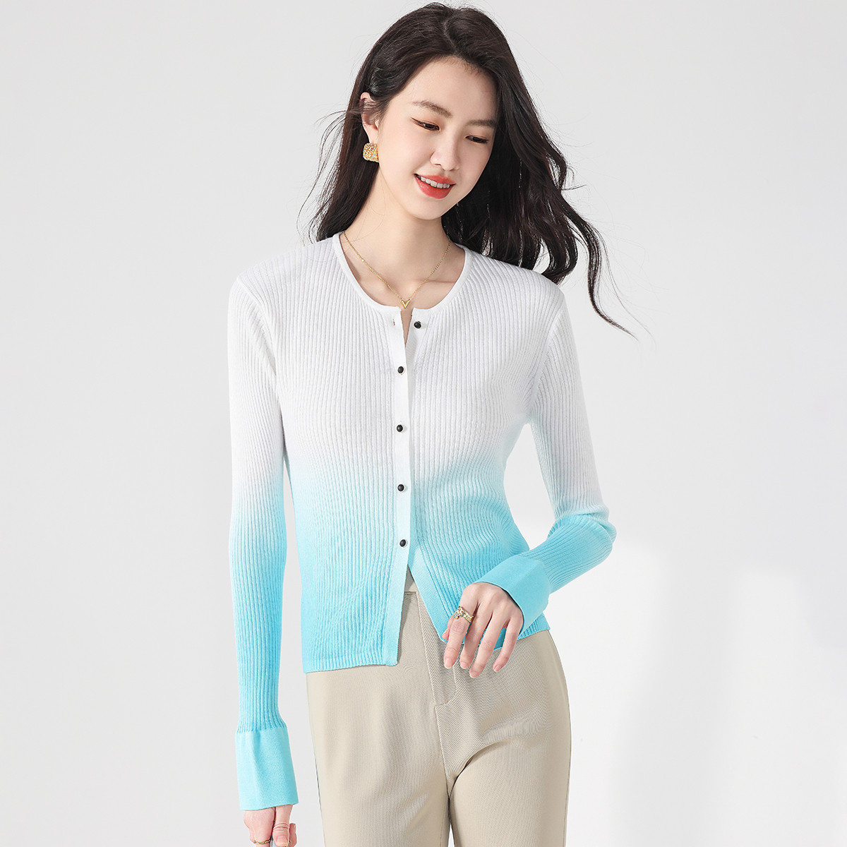 【吊染】时尚渐变吊染含羊毛针织打底毛衣外套开衫空调衫 749971