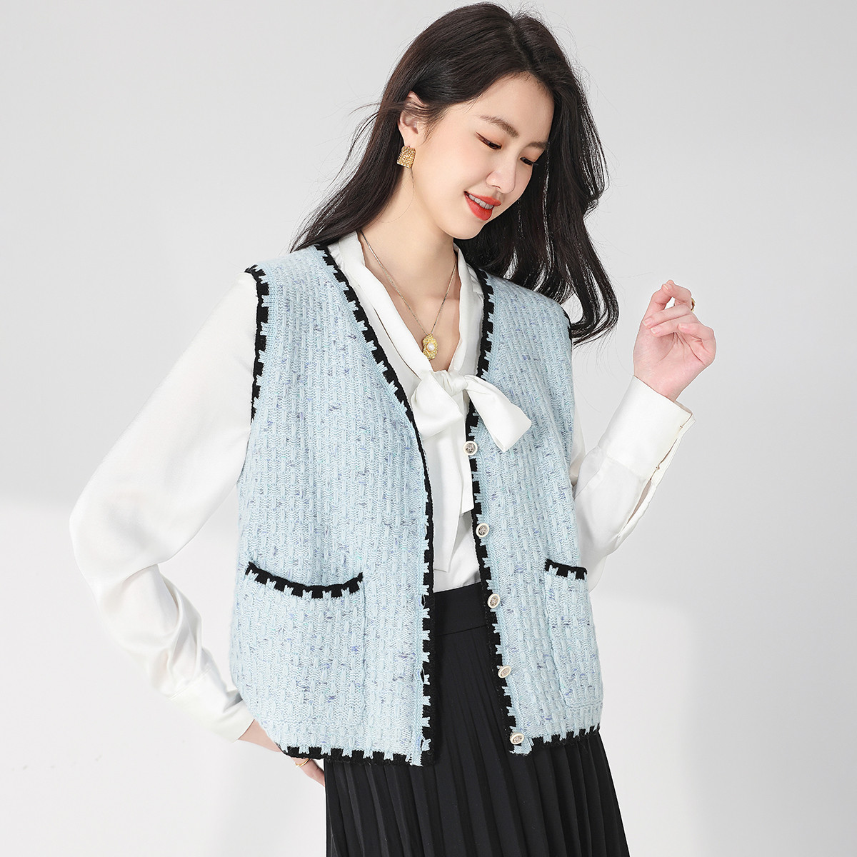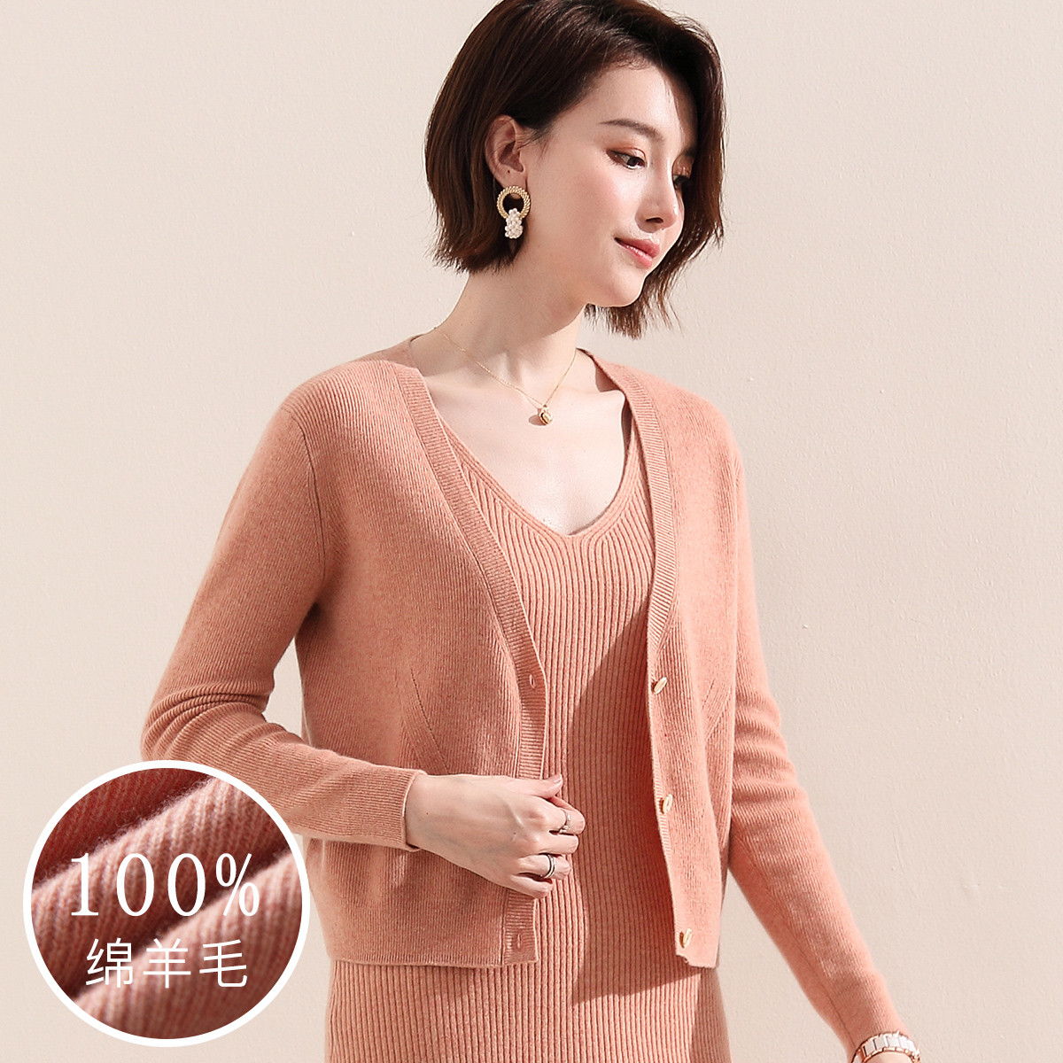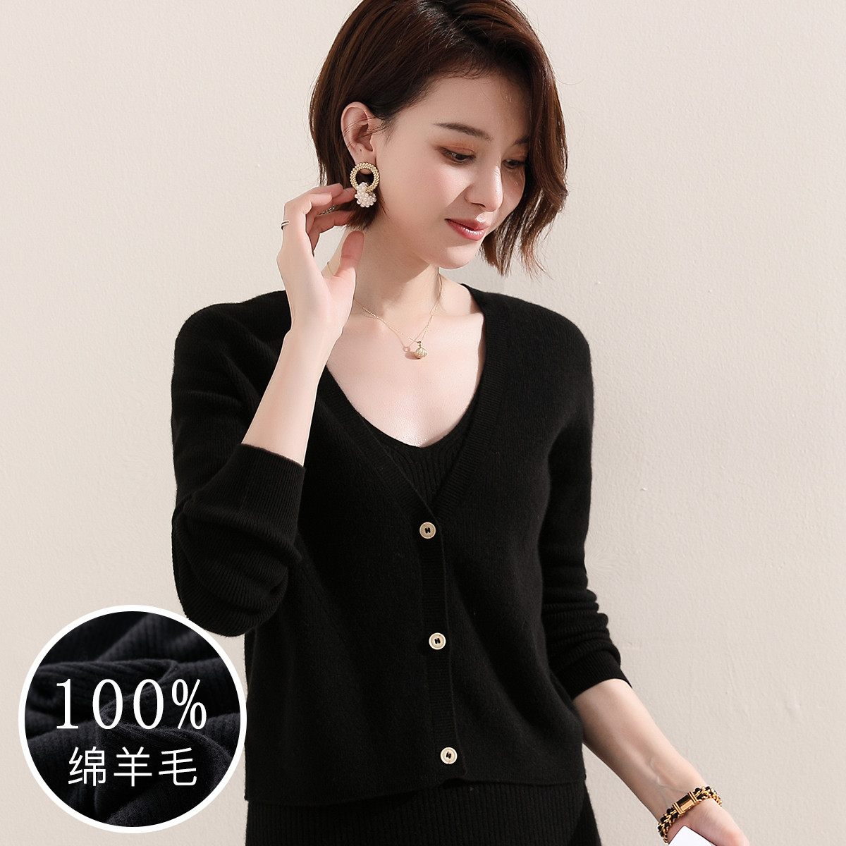 【100%绵羊毛】小香风V领针织衫女打底背心小开衫坎肩马夹 926803