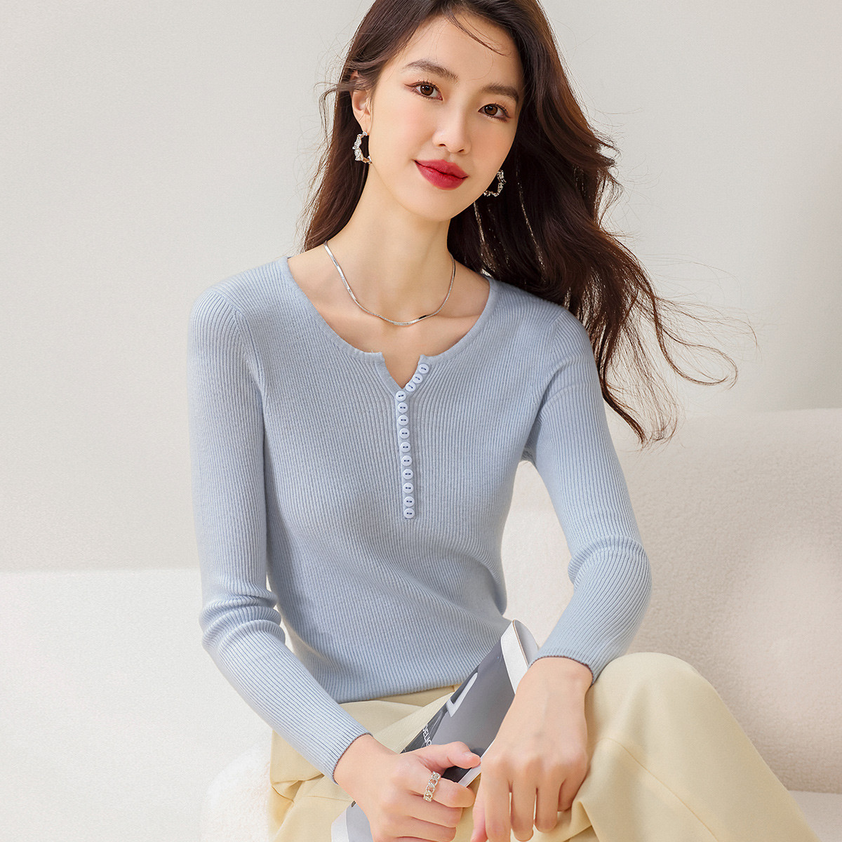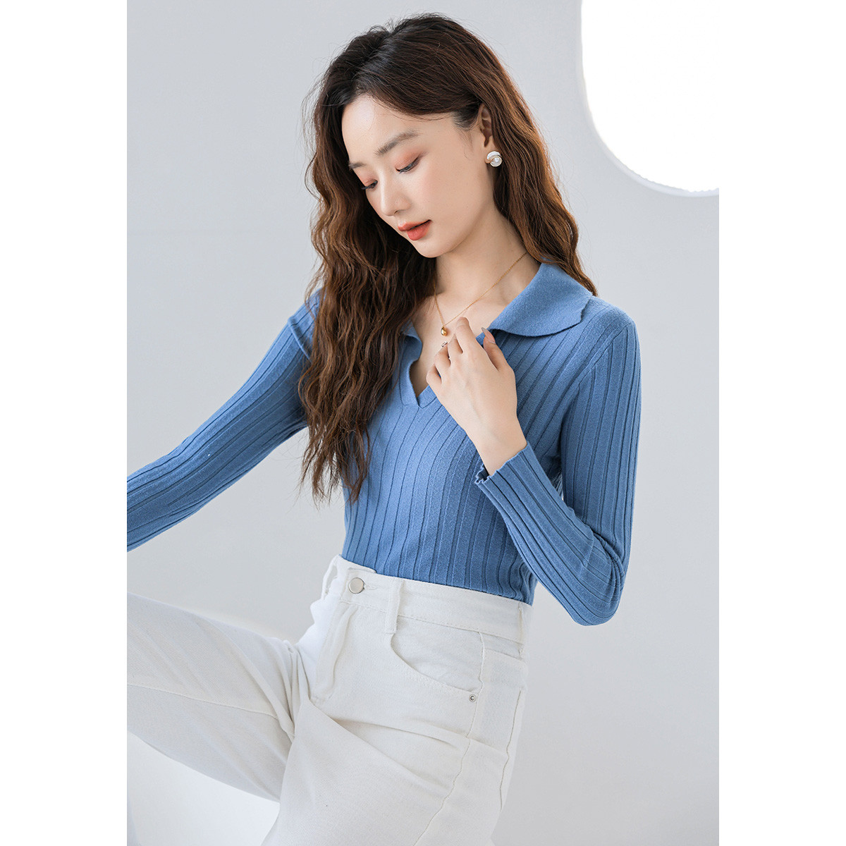 气质休闲长袖针织衫女可盐可甜内搭针织衫女 498371
