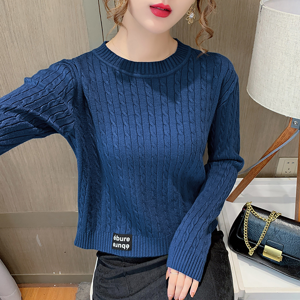 圆领针织衫麻花打底上衣长袖针织衫女 960131