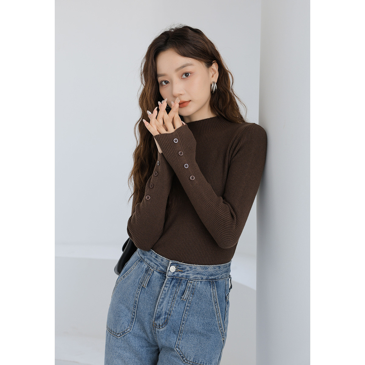 甜美针织衫内搭半高领打底百搭洋气针织上衣女 371075
