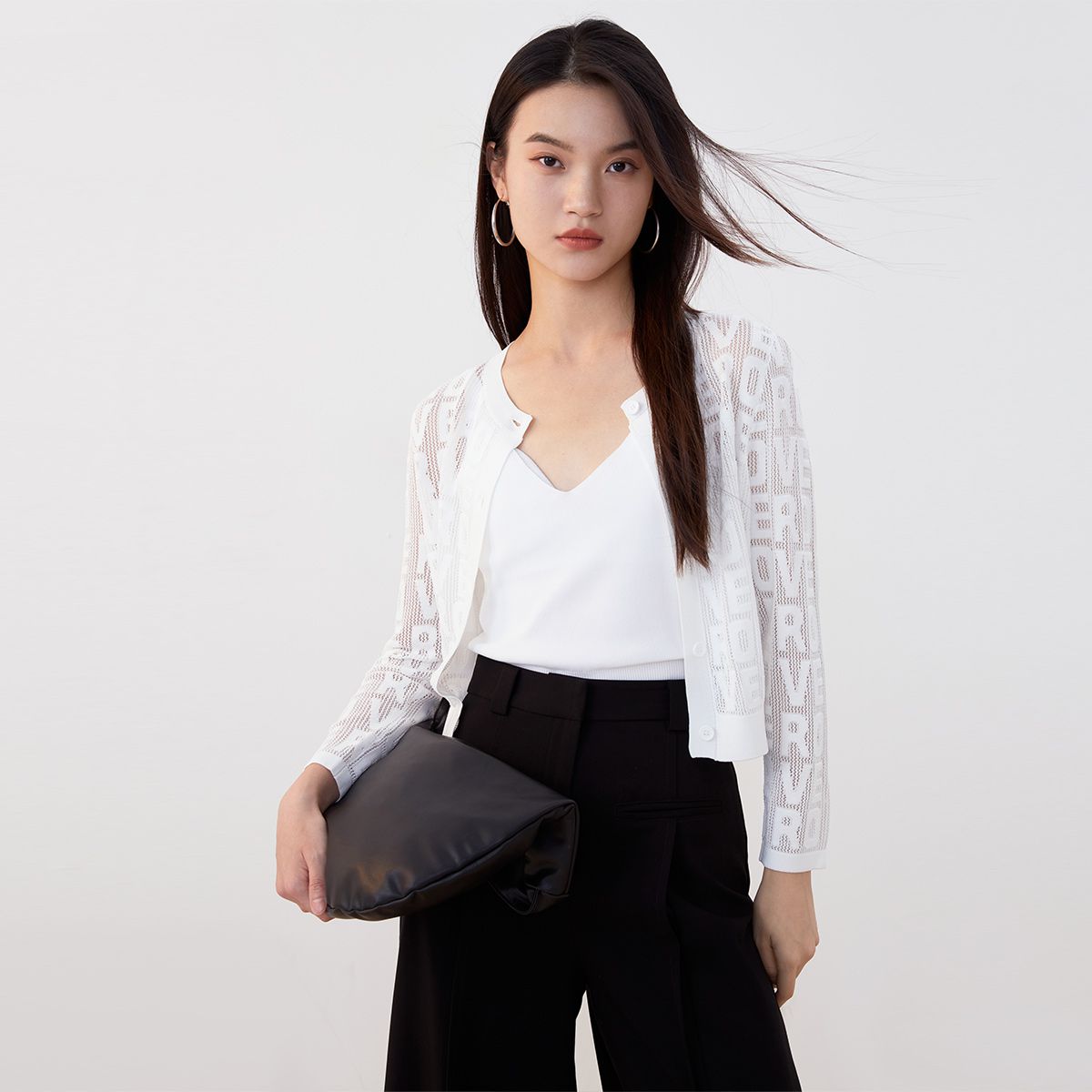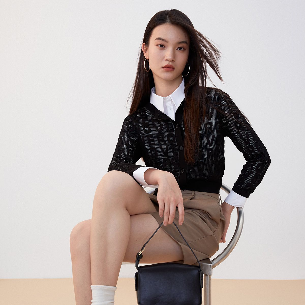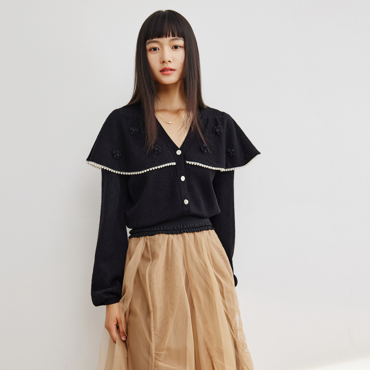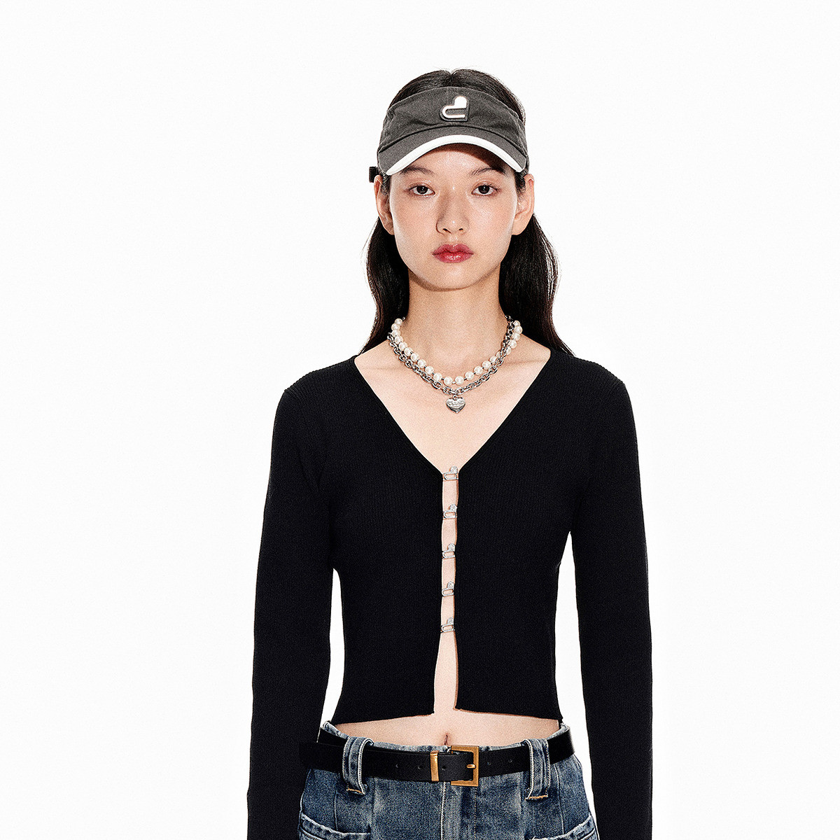 地素春秋季专柜纯欲辣妹爱心装饰扣设计针织长袖衫女 301259