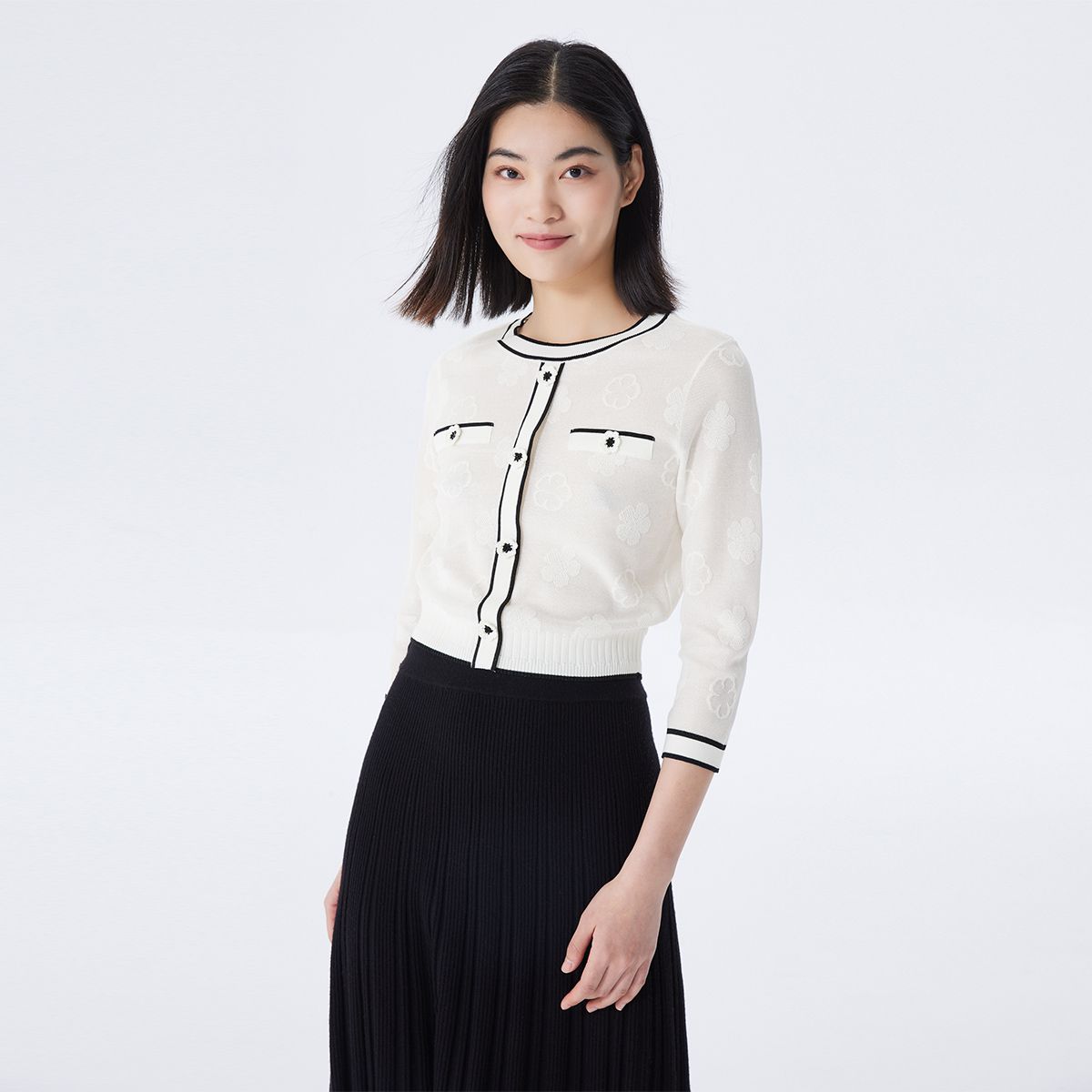 【专柜同款】春夏圆领套头七分袖印花甜美针织衫女气质百搭时尚 205265