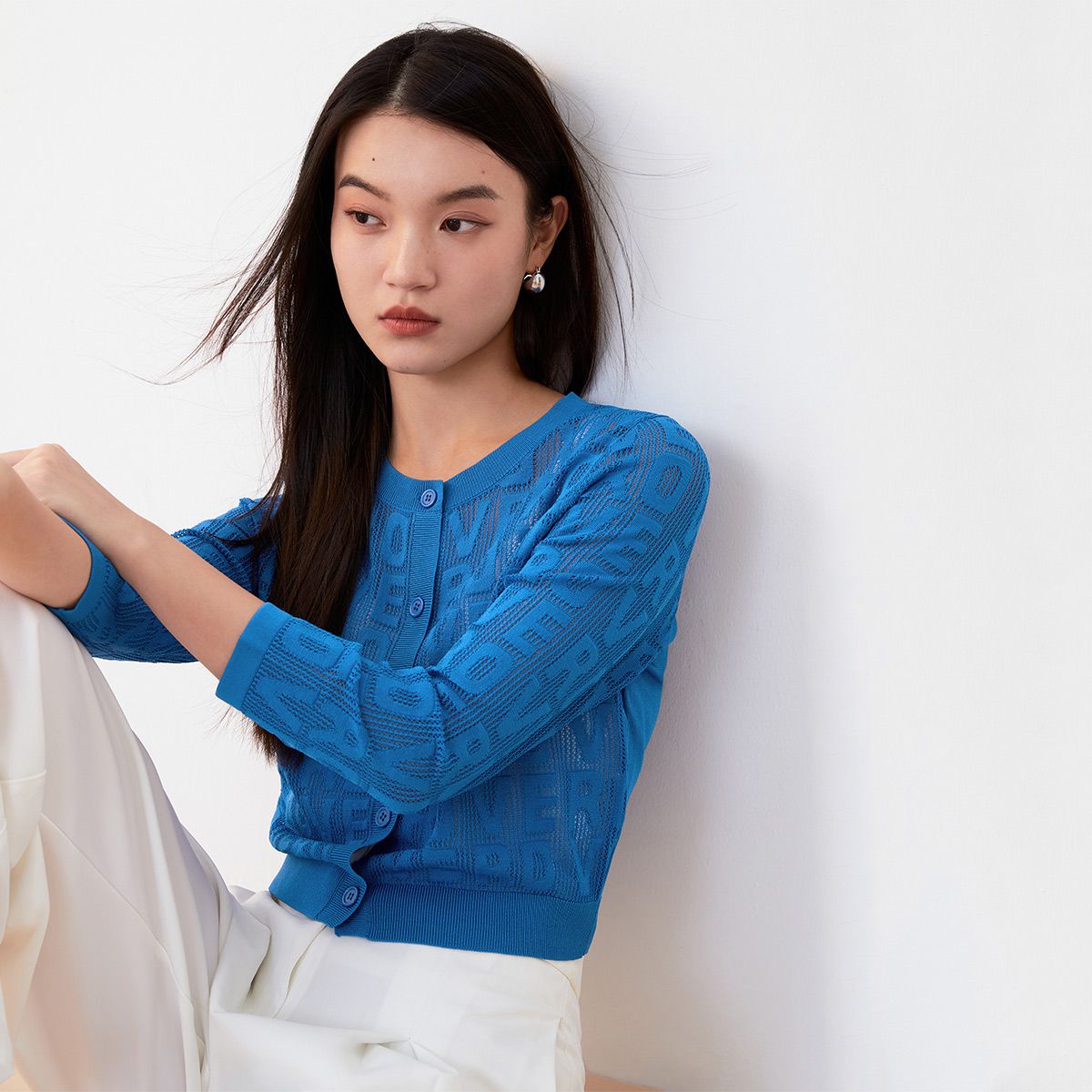 【多巴胺减龄】春夏七分袖直筒开衫字母针织衫气质百搭时尚 770705