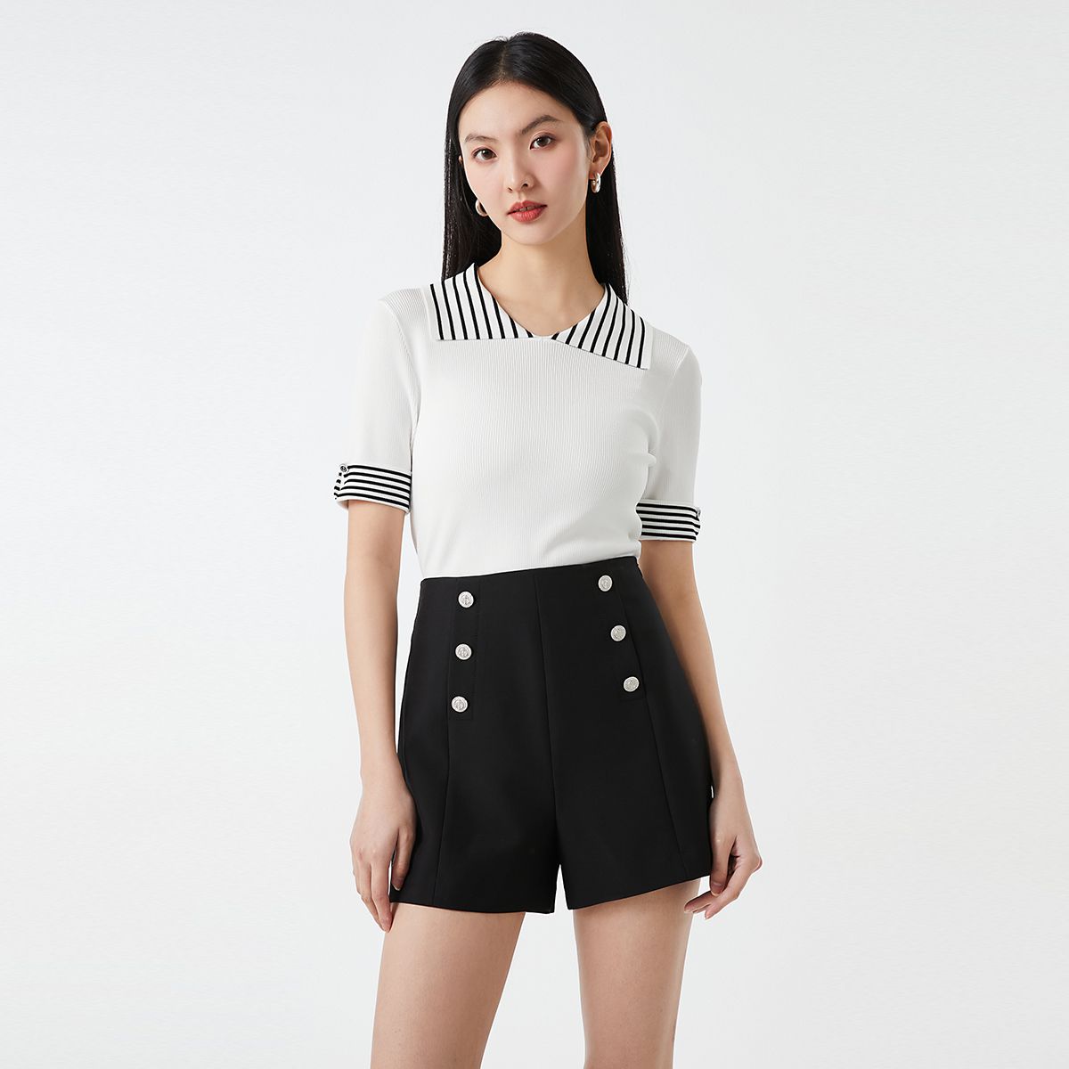 【商场同款】春秋H版型简约气质短袖针织衫女 072913