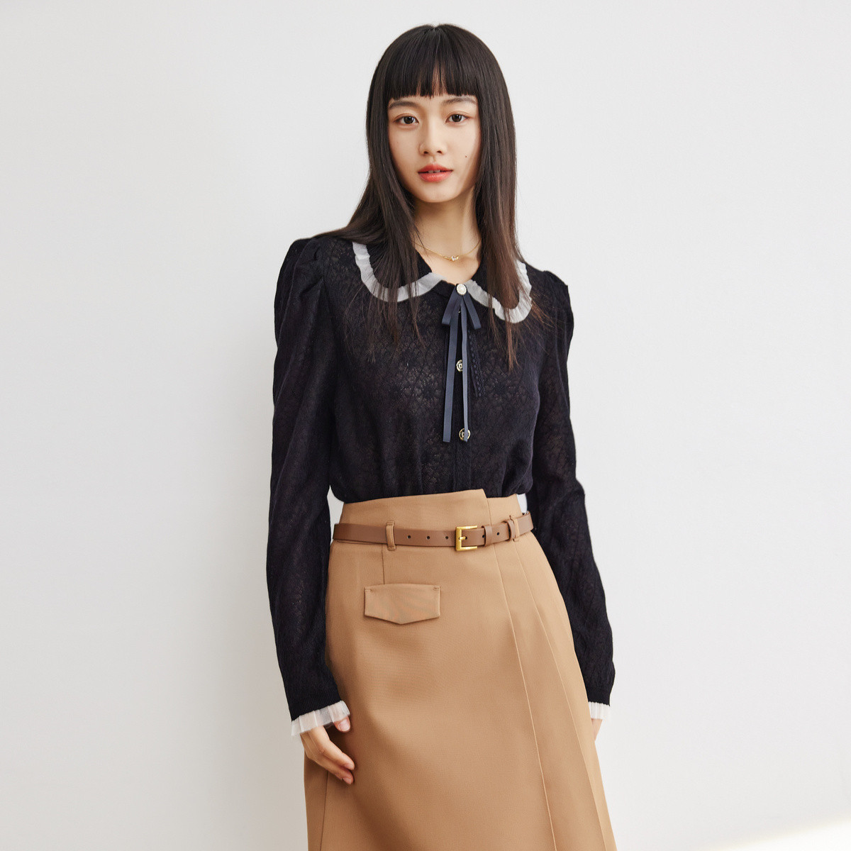 【配送领花】淑女娃娃领蕾丝衫上衣女春秋气质长袖百搭小衫女 722947