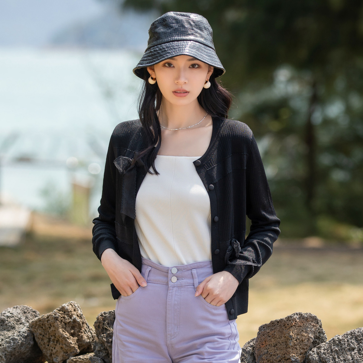 【2024秋季】时尚个性不对称设计感针织开衫修身显瘦毛衣女 746964