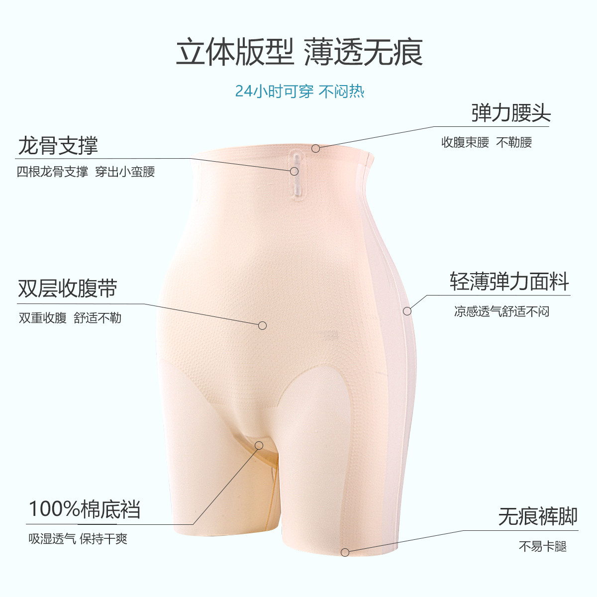 【100%纯棉裆】内裤女无痕裸感高腰收腹提臀塑腰收肚子塑身裤 450910